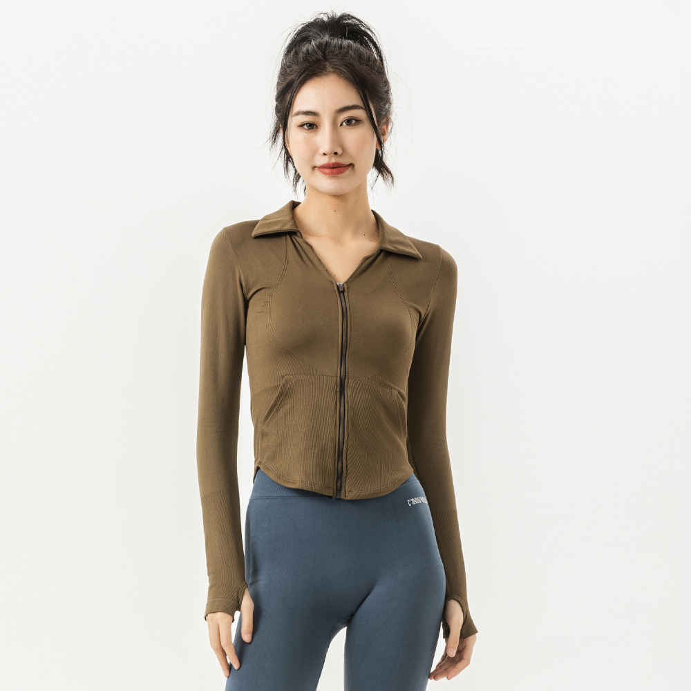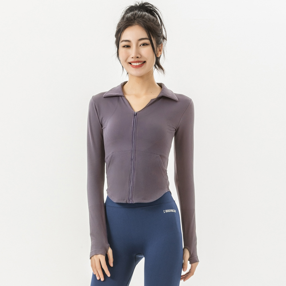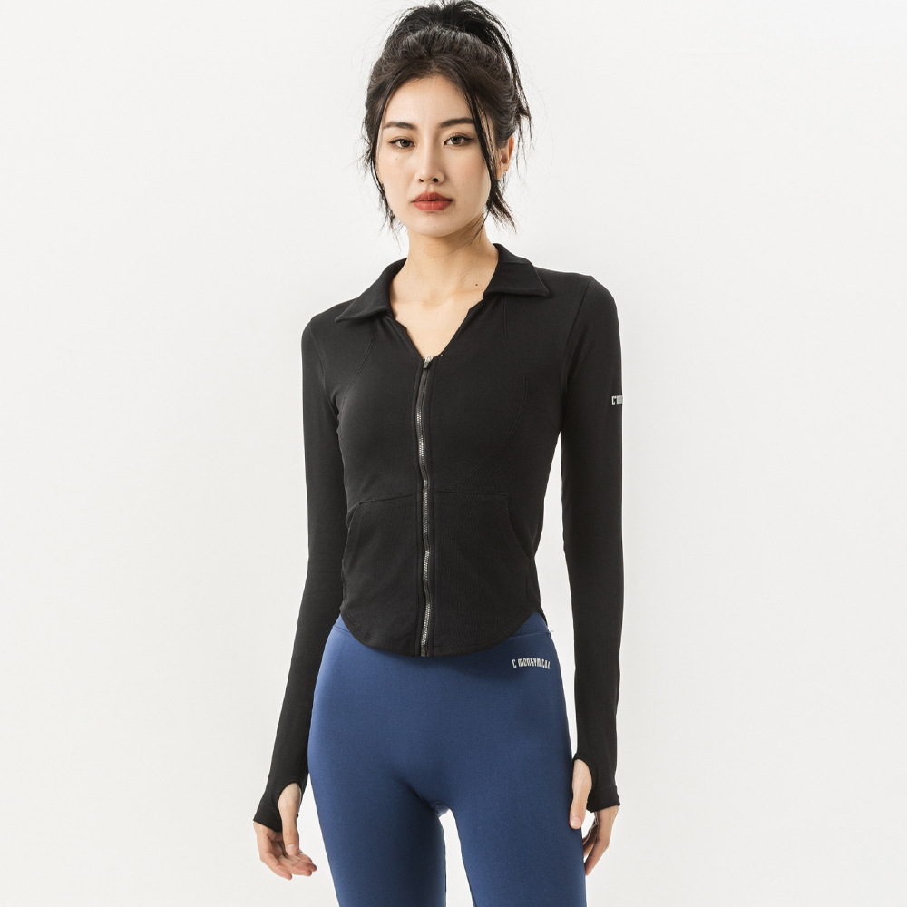 Yiang New Leica 요가 세트 여성의 가을과 겨울 V-넥 지퍼 스포츠웨어 실행 야외 피트니스 세트 요가 세트