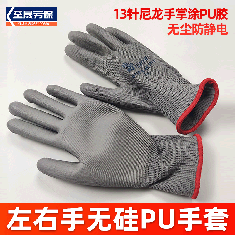 왼쪽과 오른손 회색 스몰 사이즈 S 코드 번호 7 빨간색 가장자리 PU 정전기 방지 손바닥 젖는 젖빛 미끄럼 방지 실리콘 프리 PU 손바닥 코팅 장갑스토어 가기