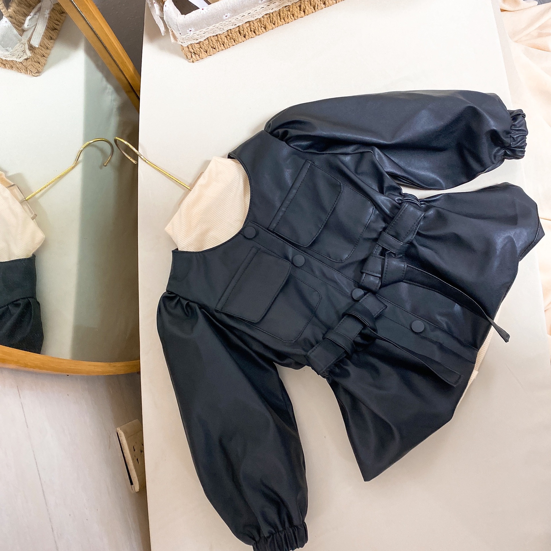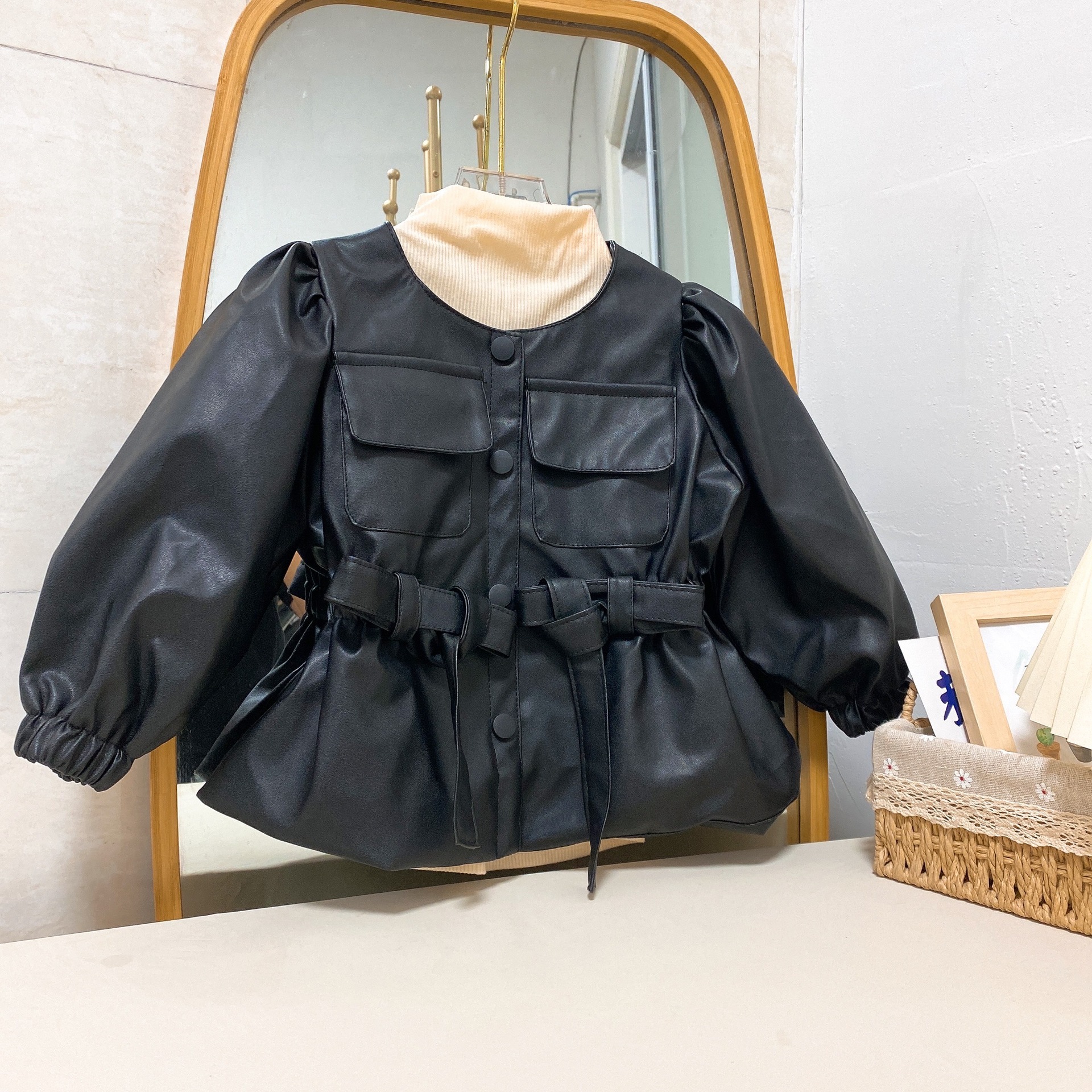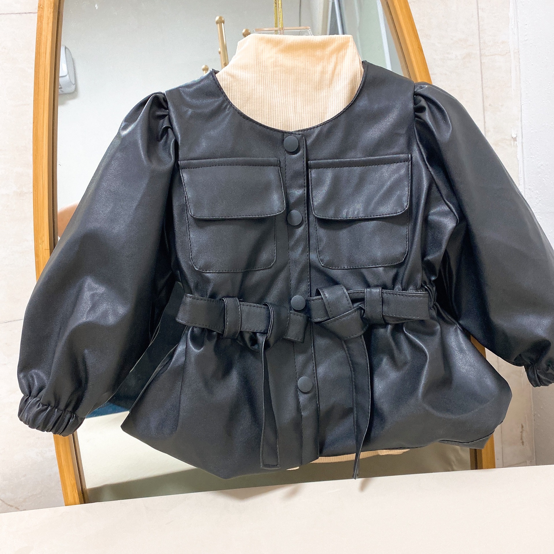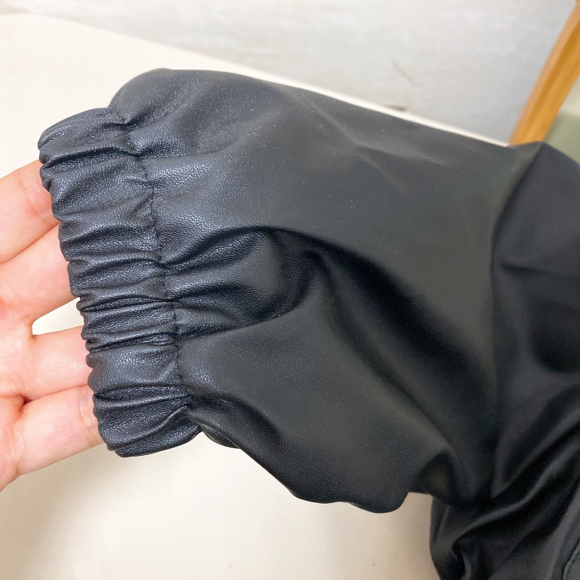 한국 스타일 여아 가죽 2022 가을과 겨울 새로운 서양식 부드러운 가죽 버블 슬리브 큰 옷깃 우아한 가죽 코트 유행스토어 가기