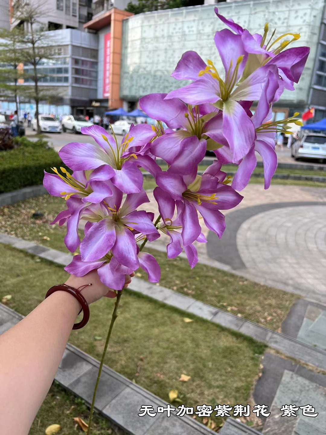 【规格】:整枝长度约92公分,2个大分叉,共18个紫荆花头,花头直径约10-13cm,不带叶子,