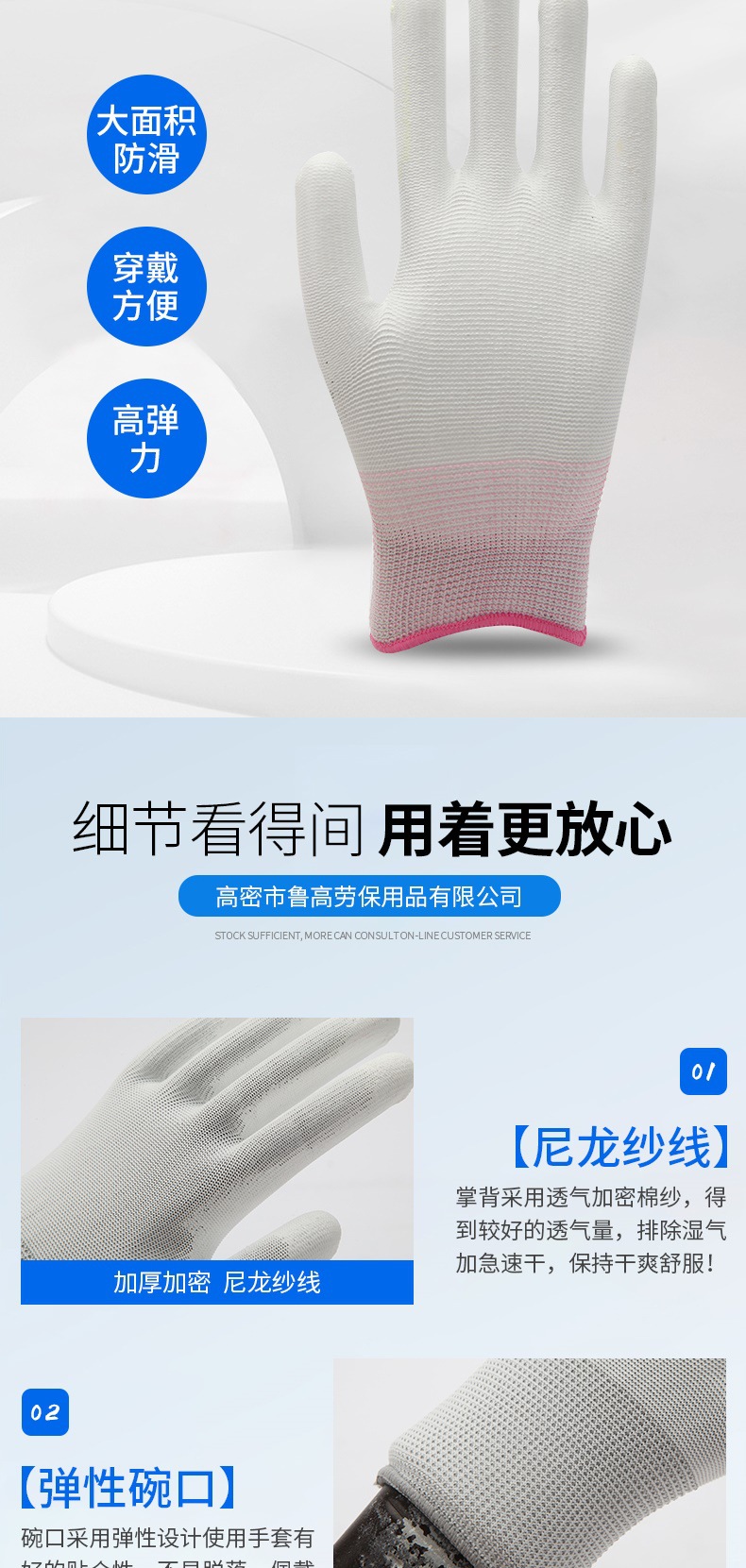 흰색 PU 코팅 손바닥 작업 장갑 먼지 없는 작업장 전자 공장 작업 장갑 나일론 담근 코팅 작업 장갑