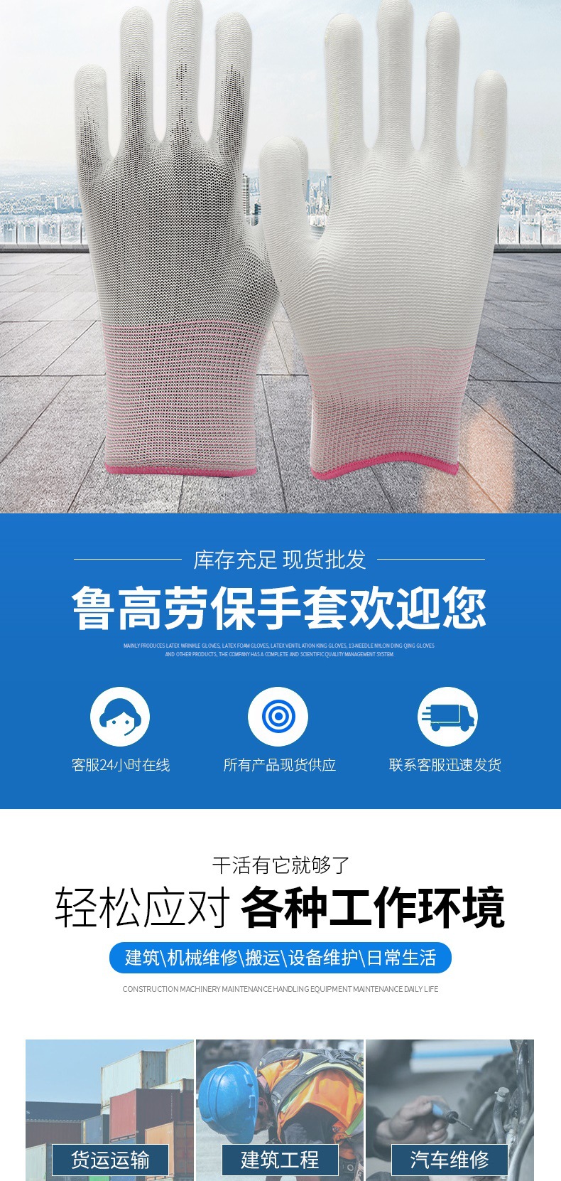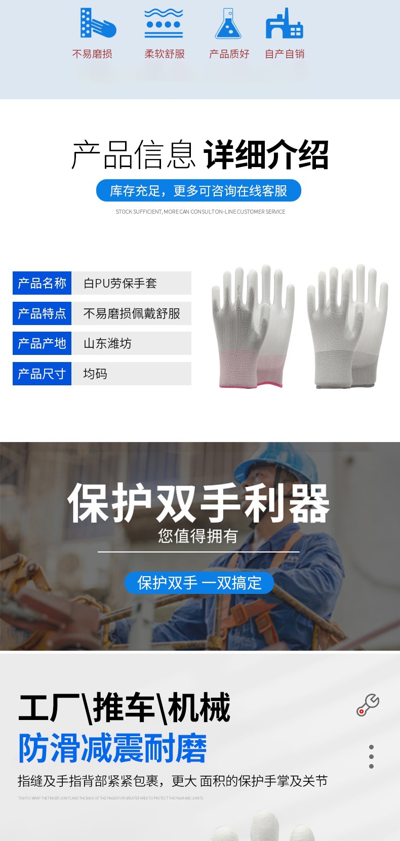 흰색 PU 코팅 손바닥 작업 장갑 먼지 없는 작업장 전자 공장 작업 장갑 나일론 담근 코팅 작업 장갑스토어 가기