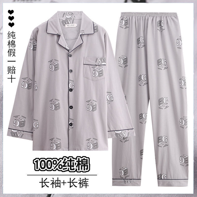 순면 잠옷 남자의 봄과 가을 긴 소매 순면 얇은 격자 무늬 플러스 사이즈 캐주얼 아웃웨어 세트스토어 가기