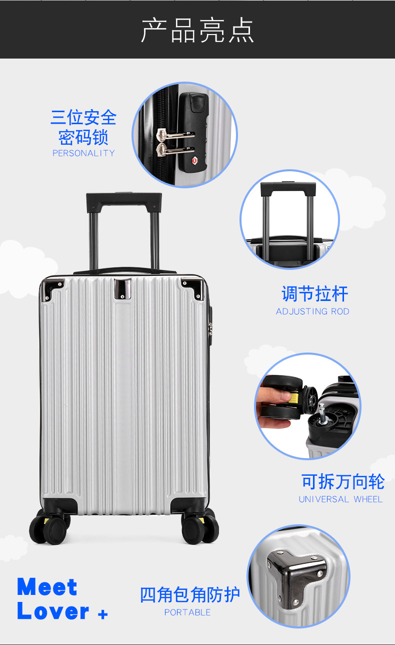 새로운 레트로 스타일 대용량 회전 바퀴 여행 가방 남녀 학생용 내구성 경량 여행 비밀번호 가방스토어 가기