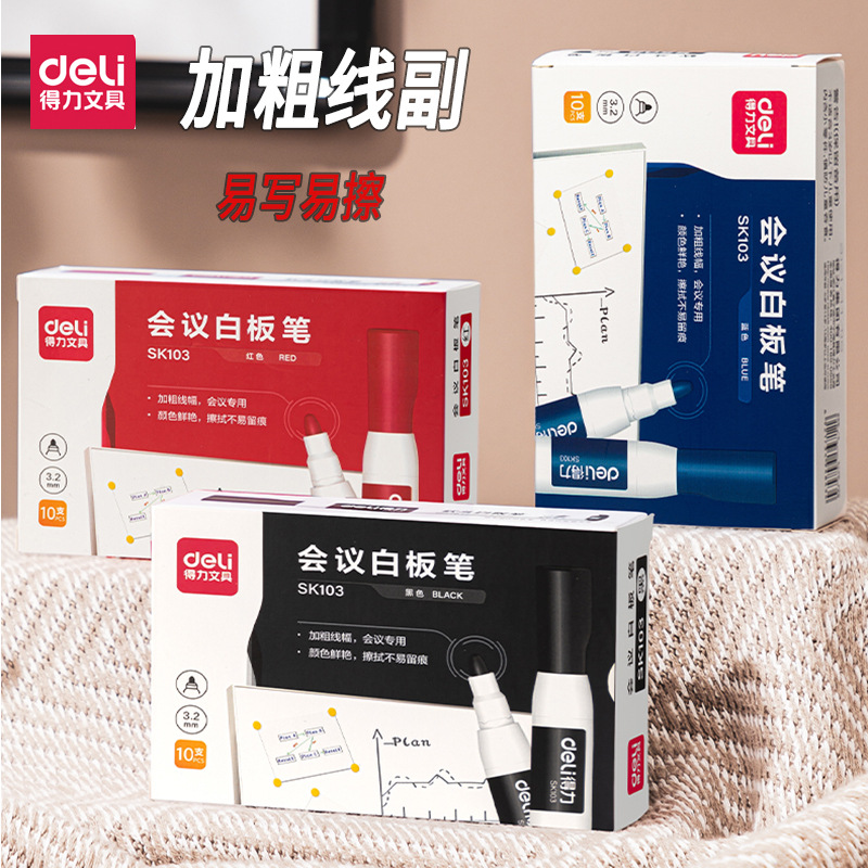 델리 화이트 보드 펜 굵게 3.2mm 회의 필기 펜 쓰기 쉽고 지우기 쉬운 칠판 티칭 펜 대용량 지울 수있는 펜