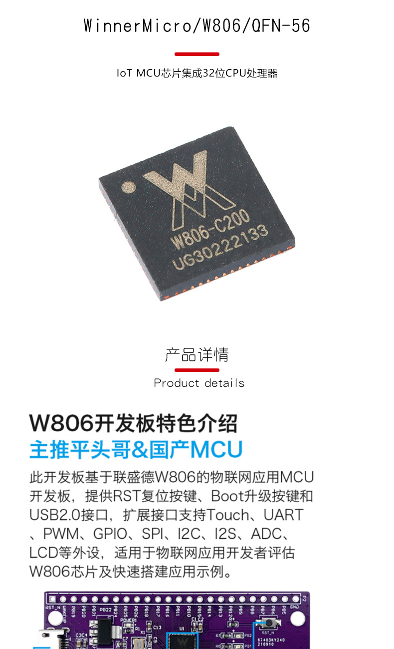 원래 정품 칩 W806-C200 QFN-56 IoT MCU 칩 통합 32 비트 CPU 프로세서스토어 가기