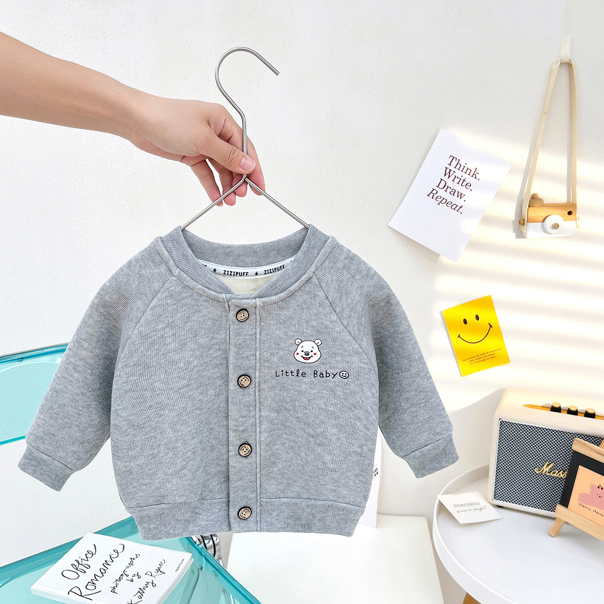 아기의 가을과 겨울 코트 남성과 여성 아기의 기모 만화 탑 어린이 겉옷 겨울 착용 소년 따뜻한 캐주얼 가디건스토어 가기