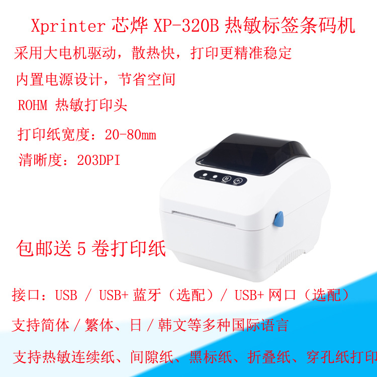 Xprinter芯烨XP-320B热敏标签条码机包邮,随机送5卷4030标签纸
