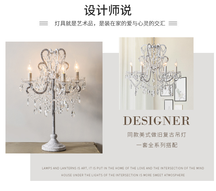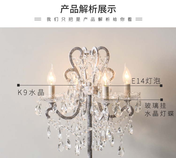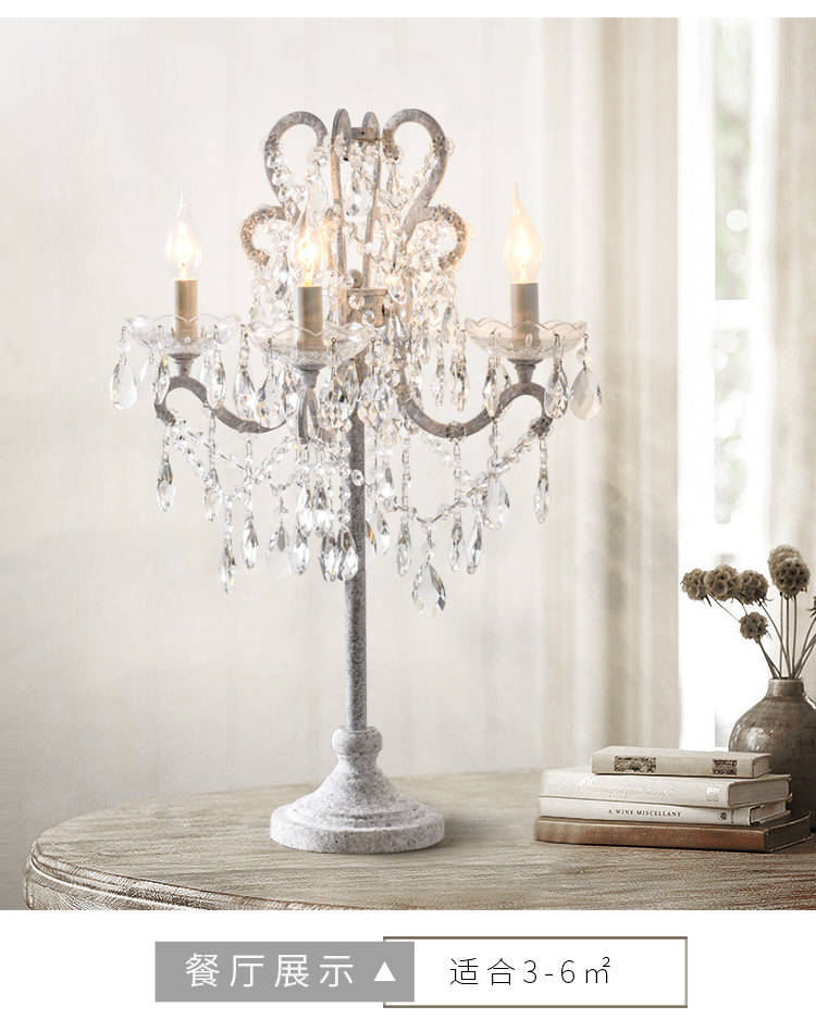 미국 스타일 컨트리 테이블 램프 거실 수직 크리스탈 테이블 램프 창조적 인 복고풍 흰색 프랑스 스타일 연구 침실에 대한 간단한 침대 옆 램프스토어 가기