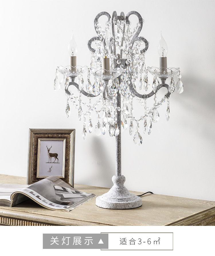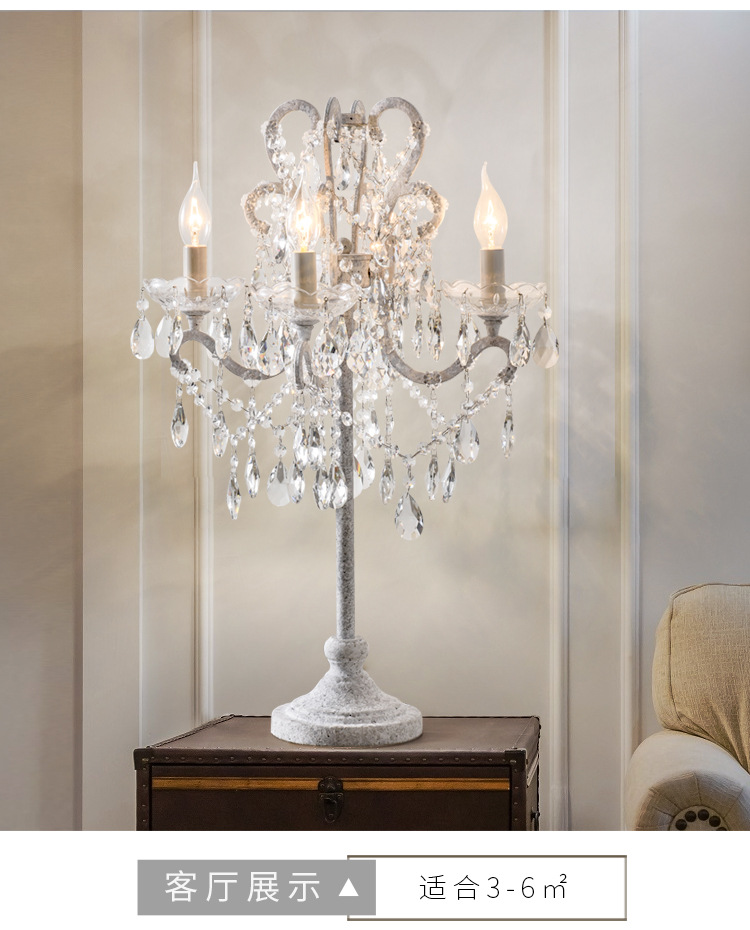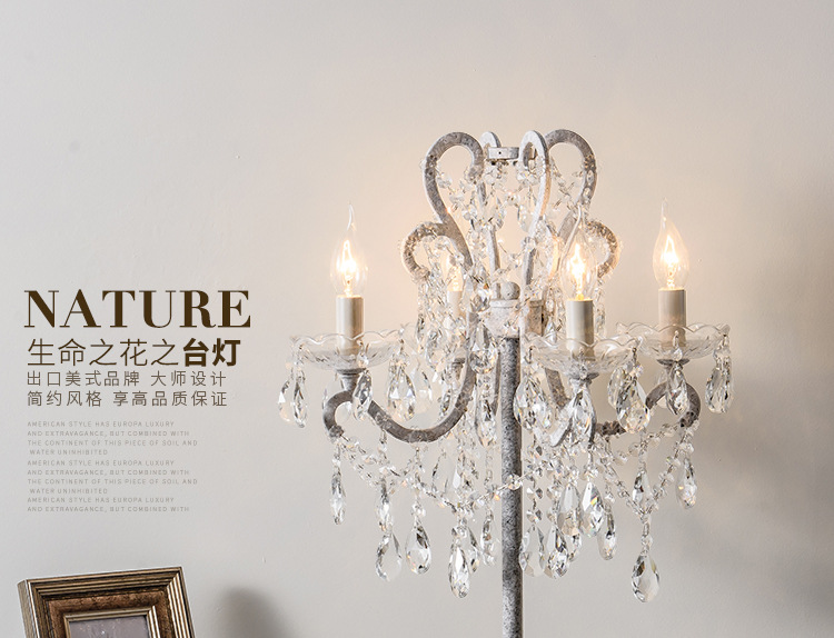 미국 스타일 컨트리 테이블 램프 거실 수직 크리스탈 테이블 램프 창조적 인 복고풍 흰색 프랑스 스타일 연구 침실에 대한 간단한 침대 옆 램프