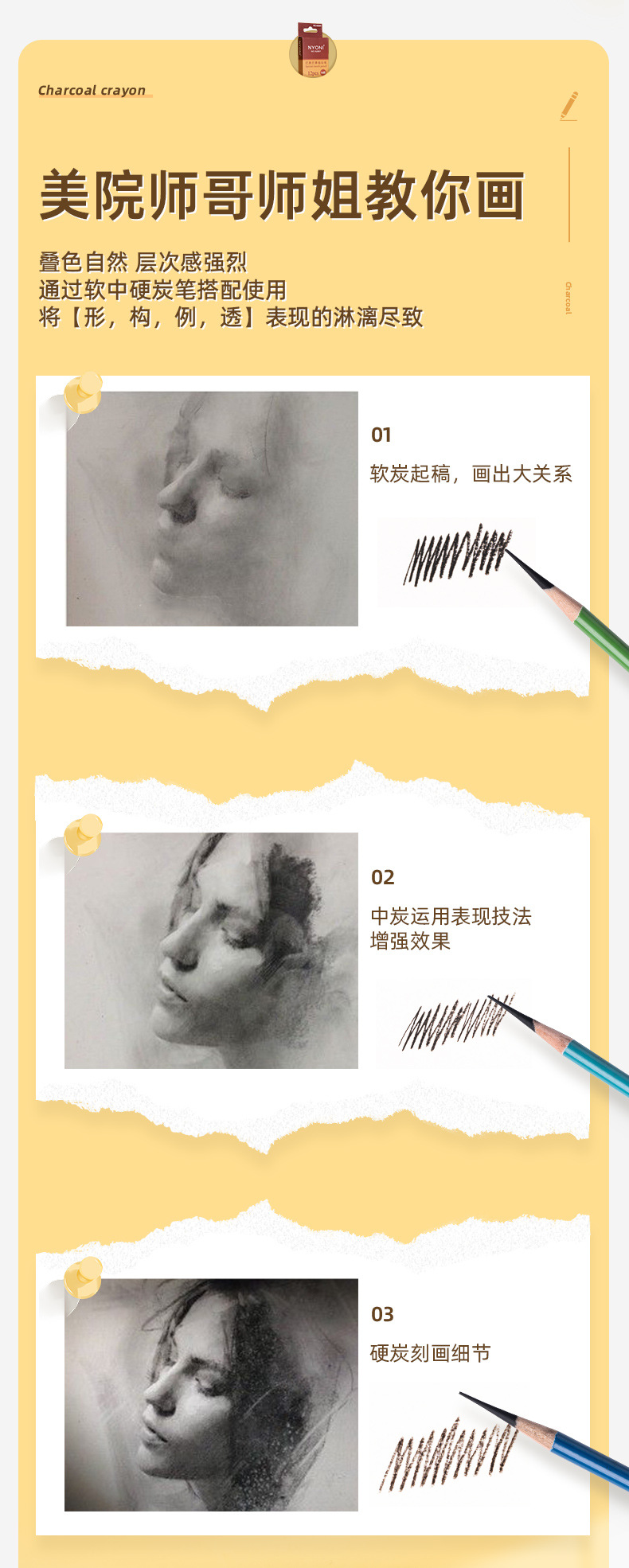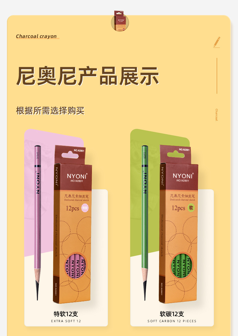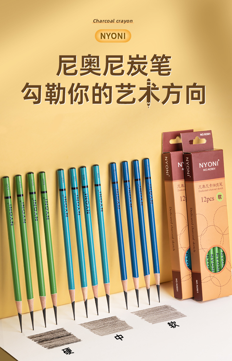 니오니 숯 펜 도매 스케치 펜 뇨니 미술 학생 특별 스케치 펜 소프트 미디엄 하드 카본 연필