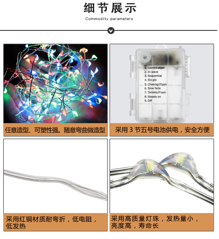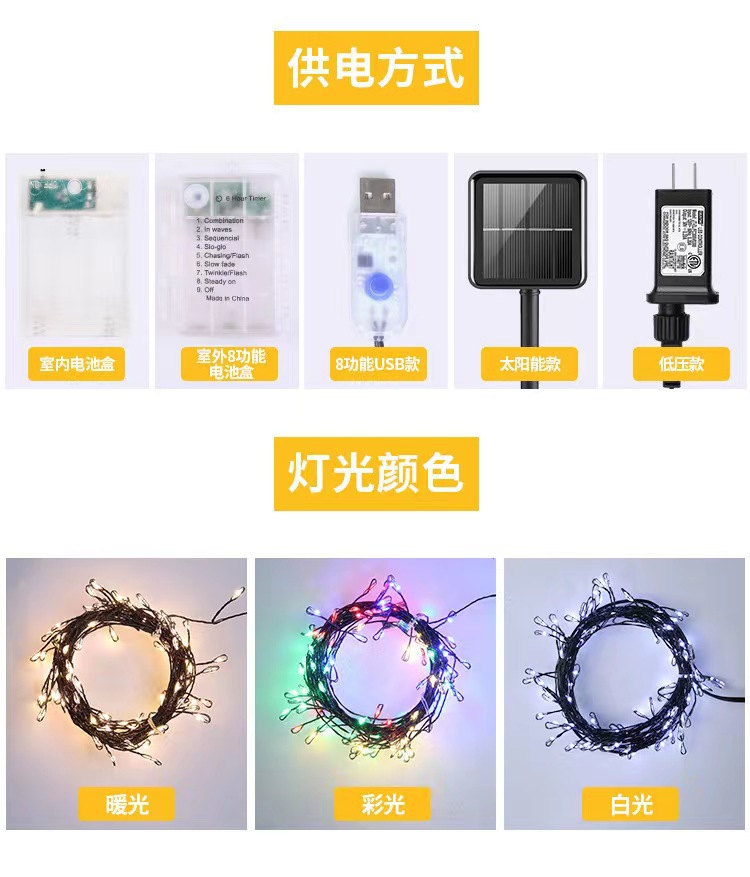 한국에서 인기 있는 LED 구리선 폭죽 조명 전구, 플러그형 구리선 조명, 창의적인 지네 모양 조명, 크리스마스 장식 조명