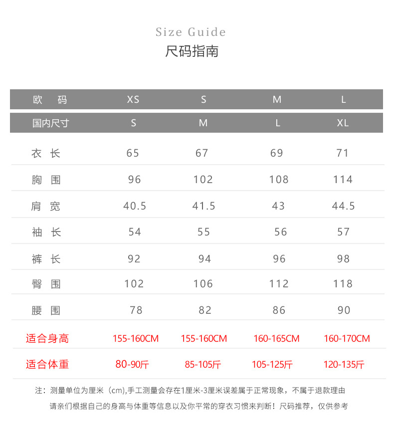 • 유럽 코드 XS (높이 155-160 무게 40.00 kg-45.00 kg