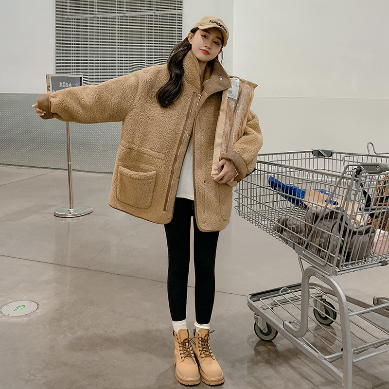 리얼 샷 틈새 복고풍 구식 양면 착용 양고기 모피 원피스 드로우 스트링 허리 디자인 코튼 패딩 재킷 코트 여성스토어 가기