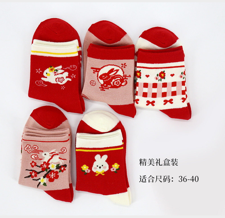토끼의 해 빨간 양말 여성 면화 중반 송아지 양말 산후 새해 양말 선물 상자 큰 빨간 스타킹 양말 도매 원피스 세대