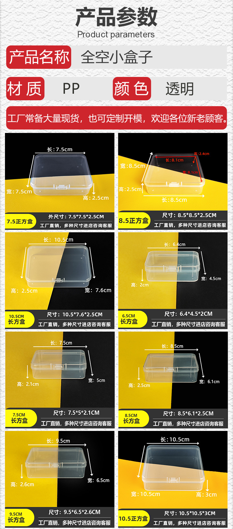 도매 투명 PP 상자 직사각형 부품 상자 포장 빈 상자 데스크탑 보관 상자 물체 정리 상자 플라스틱 사각형 상자스토어 가기