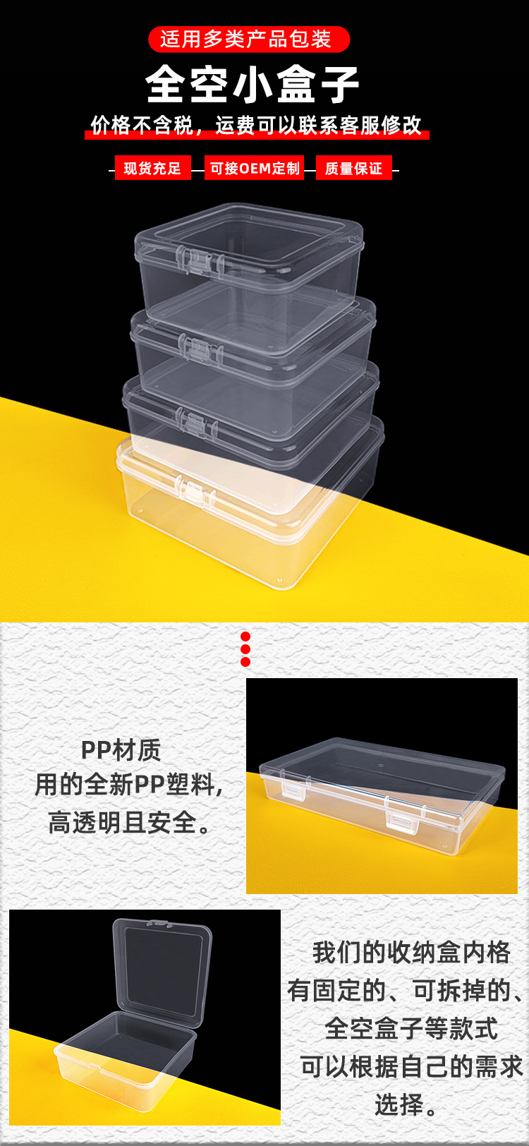도매 투명 PP 상자 직사각형 부품 상자 포장 빈 상자 데스크탑 보관 상자 물체 정리 상자 플라스틱 사각형 상자