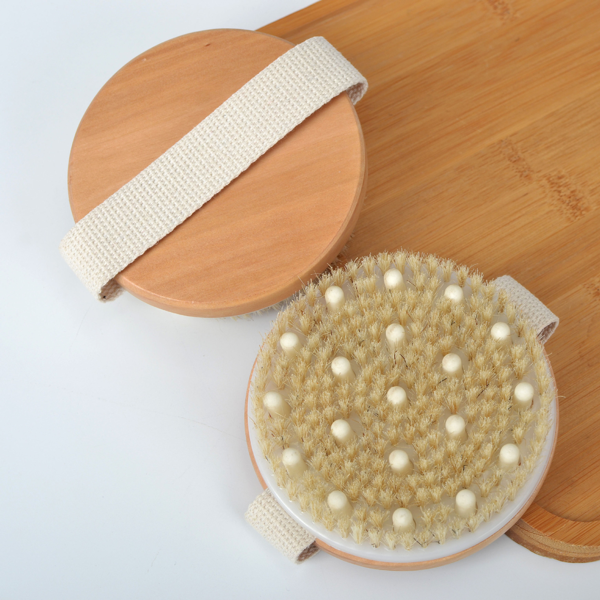 라운드 마사지 목욕 브러쉬 각질 제거 스파 목욕 마사지 천연 하이 퀄리티 부티크 강모 나무 목욕 브러쉬