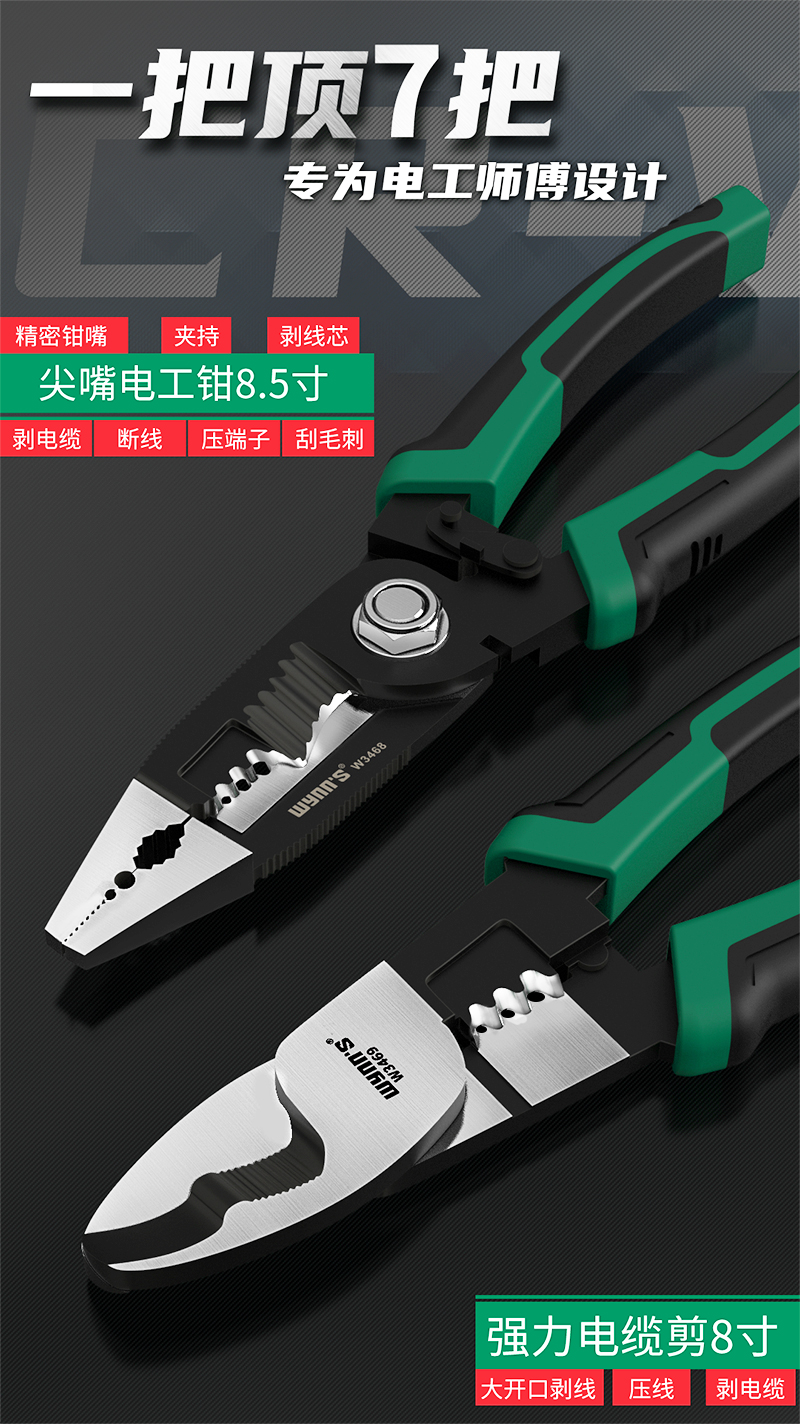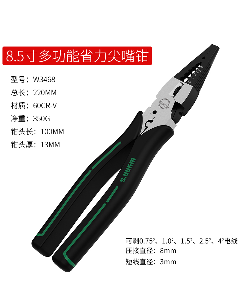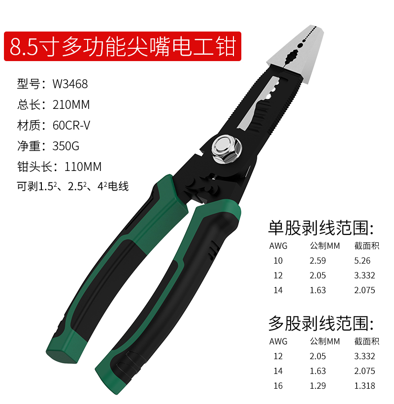 Willion wynns 다기능 날카로운 코 펜치 9 인치 와이어 스트립 펜치 압착 펜치 케이블 커터 전기 특수 펜치