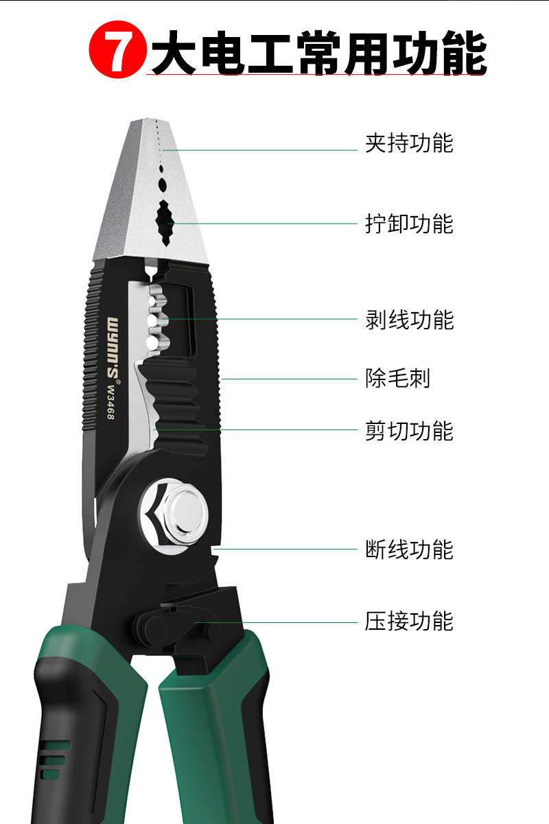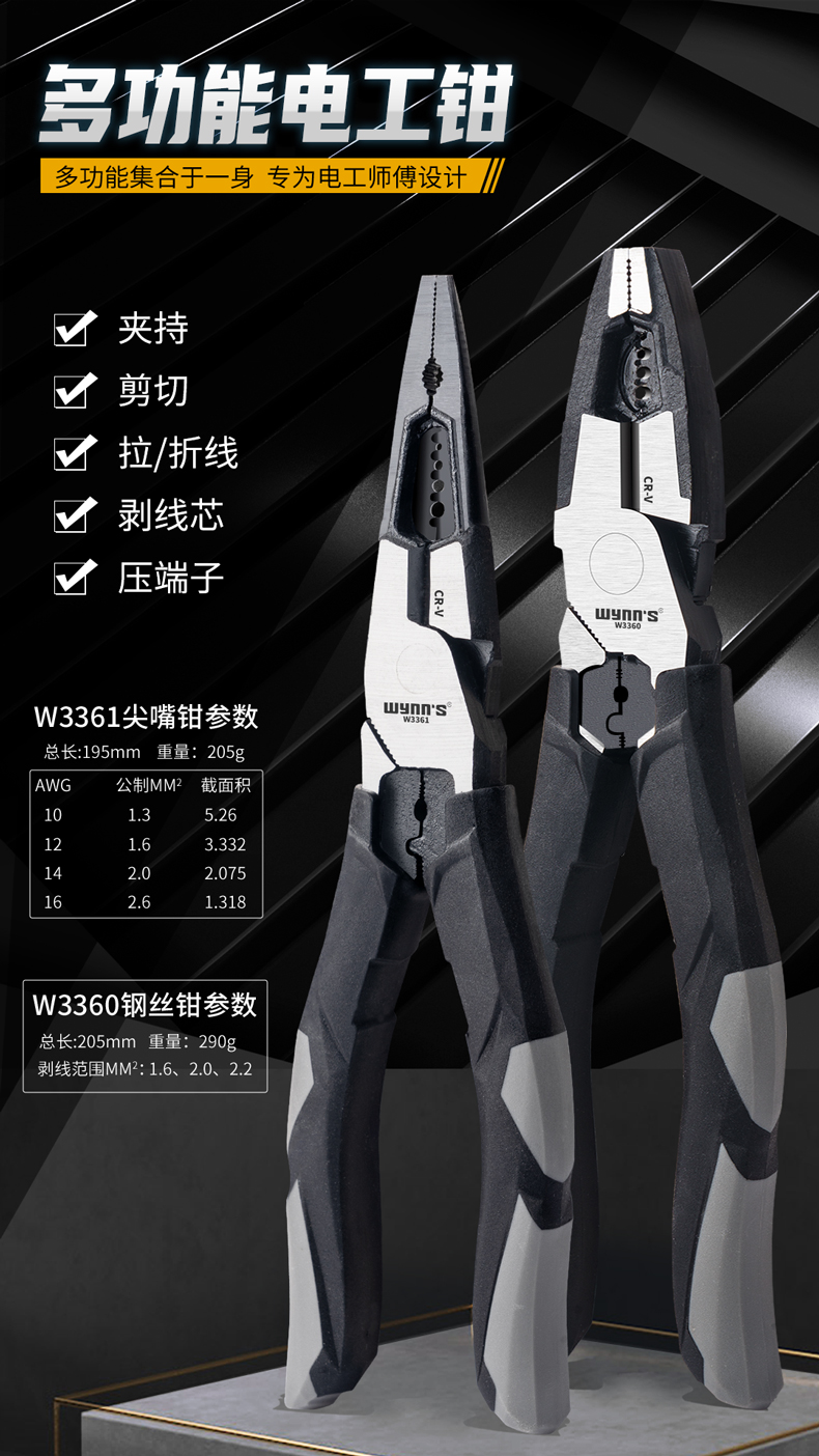 Willion wynns 다기능 날카로운 코 펜치 9 인치 와이어 스트립 펜치 압착 펜치 케이블 커터 전기 특수 펜치스토어 가기