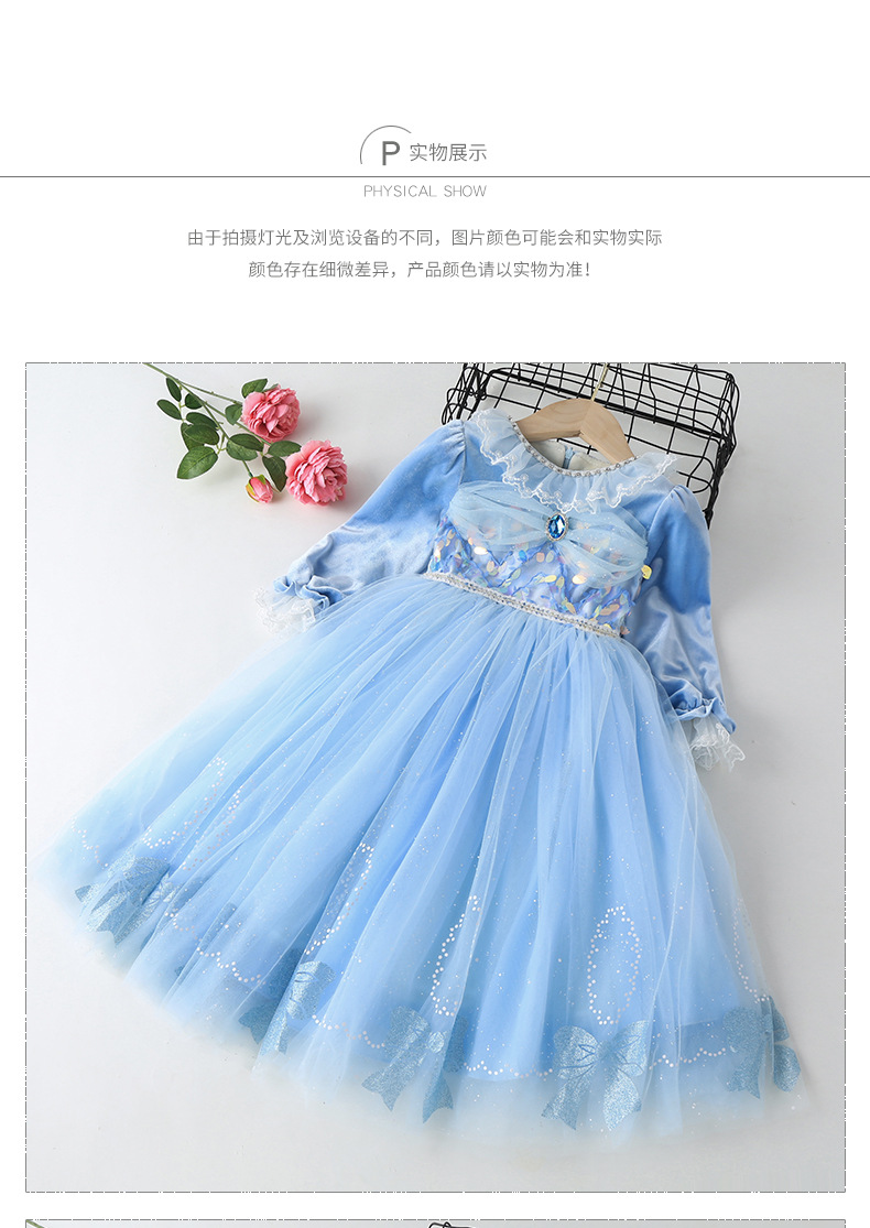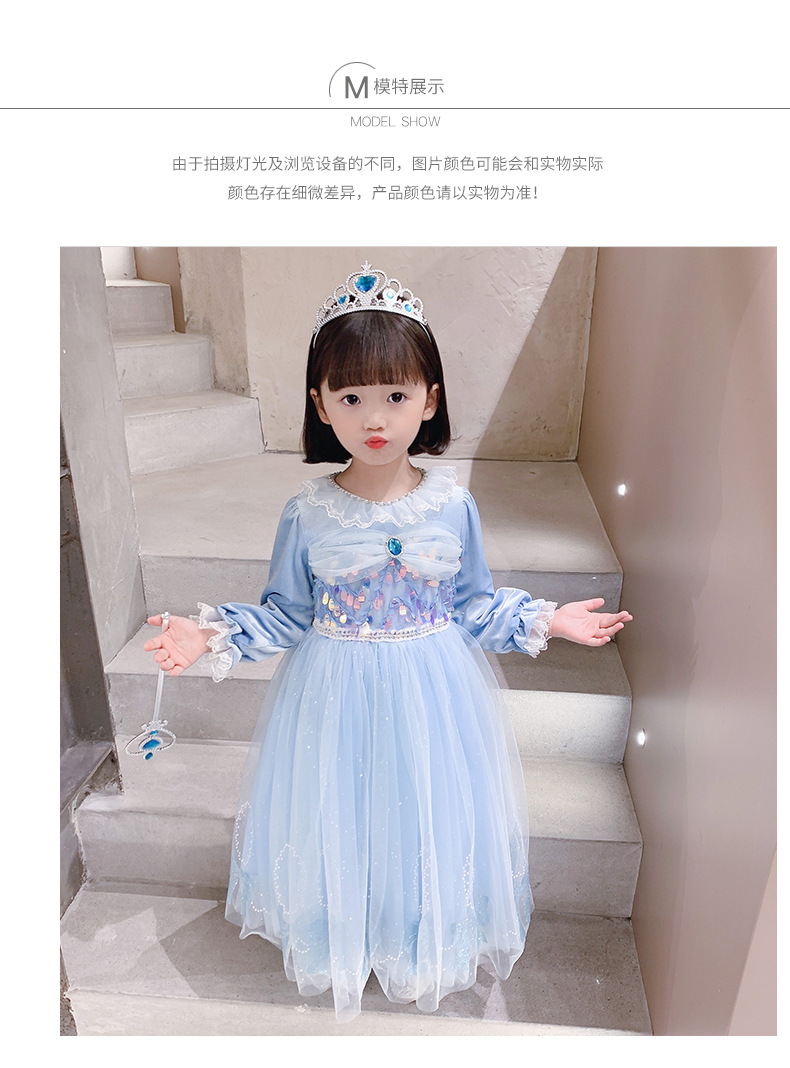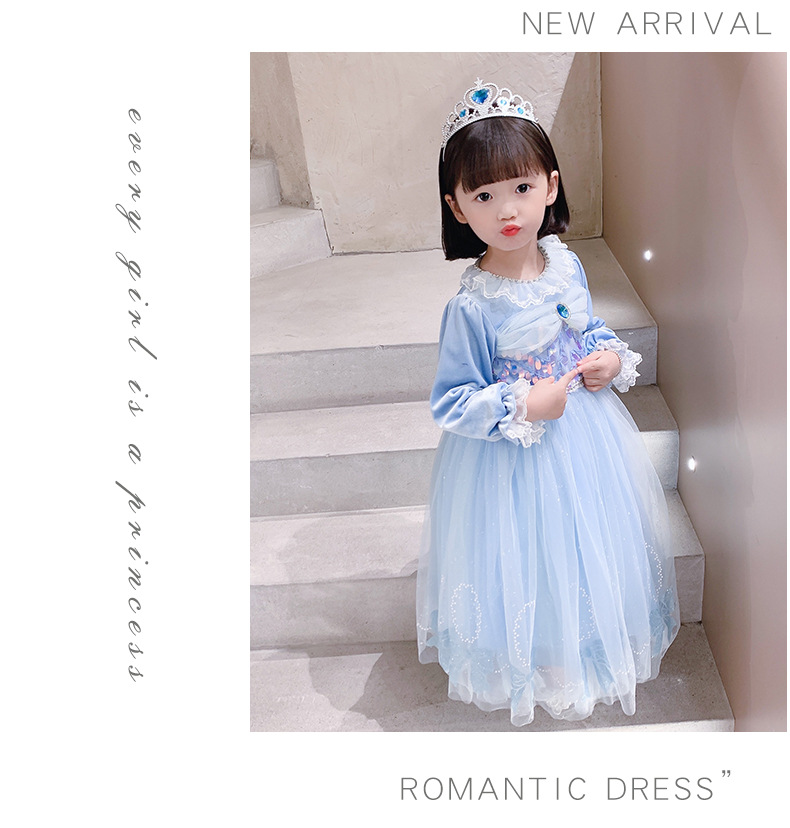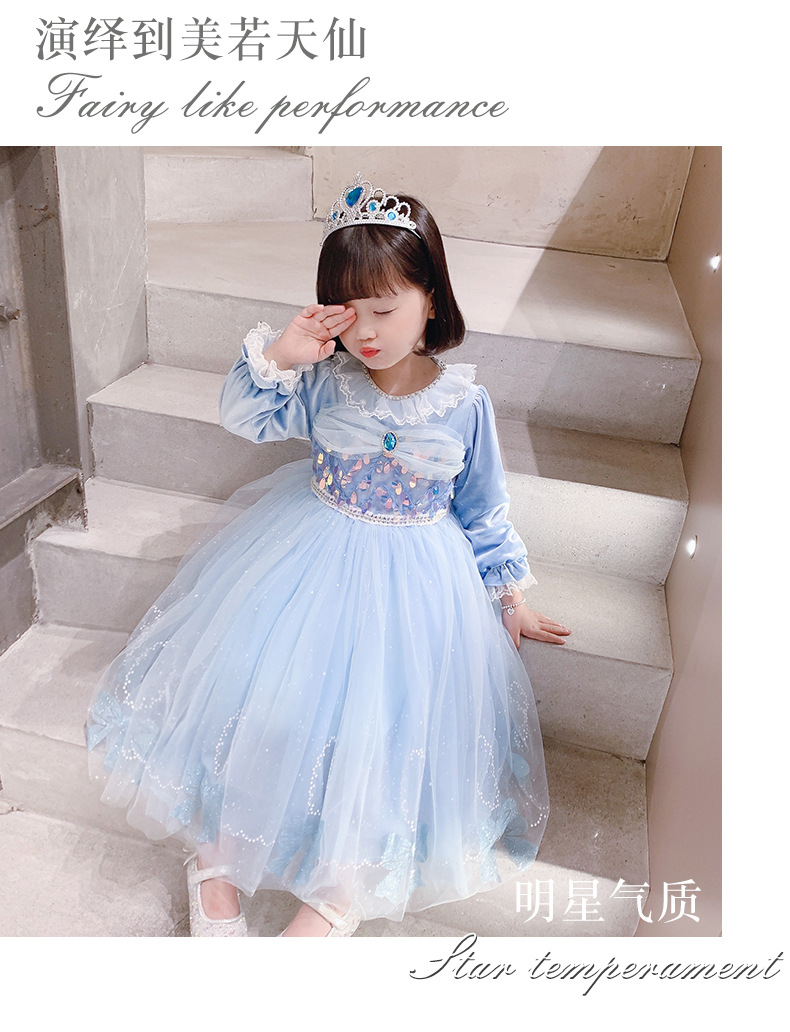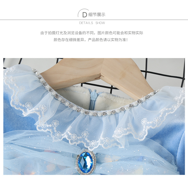 냉동 공주 엘사 원피스 소녀 가을과 겨울 기모 원피스 어린이 엘사 활 두꺼운 원사 스커트