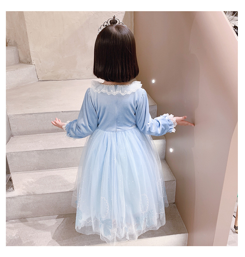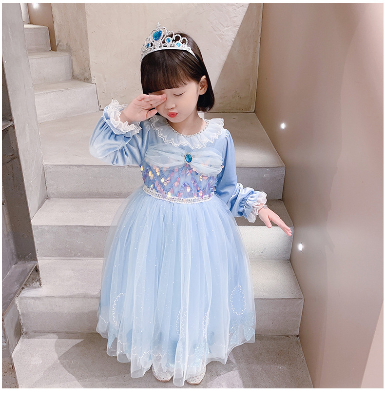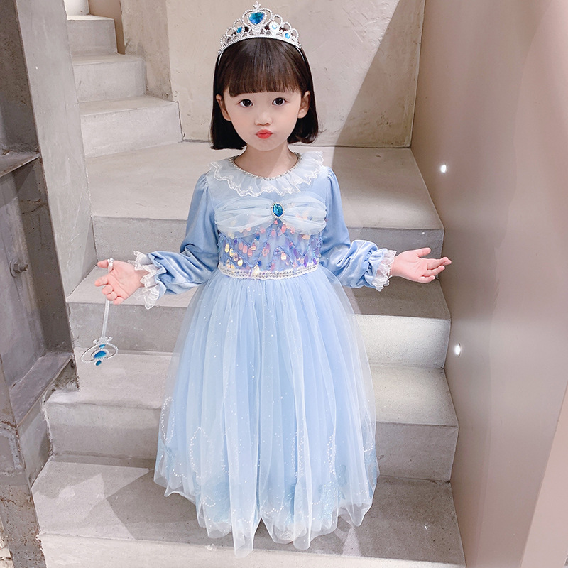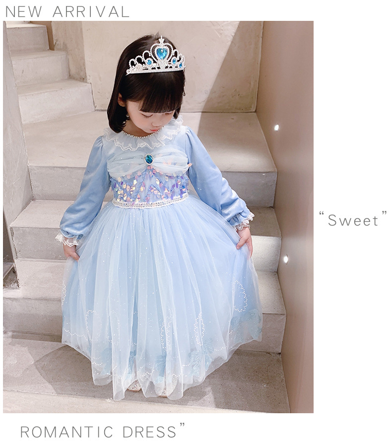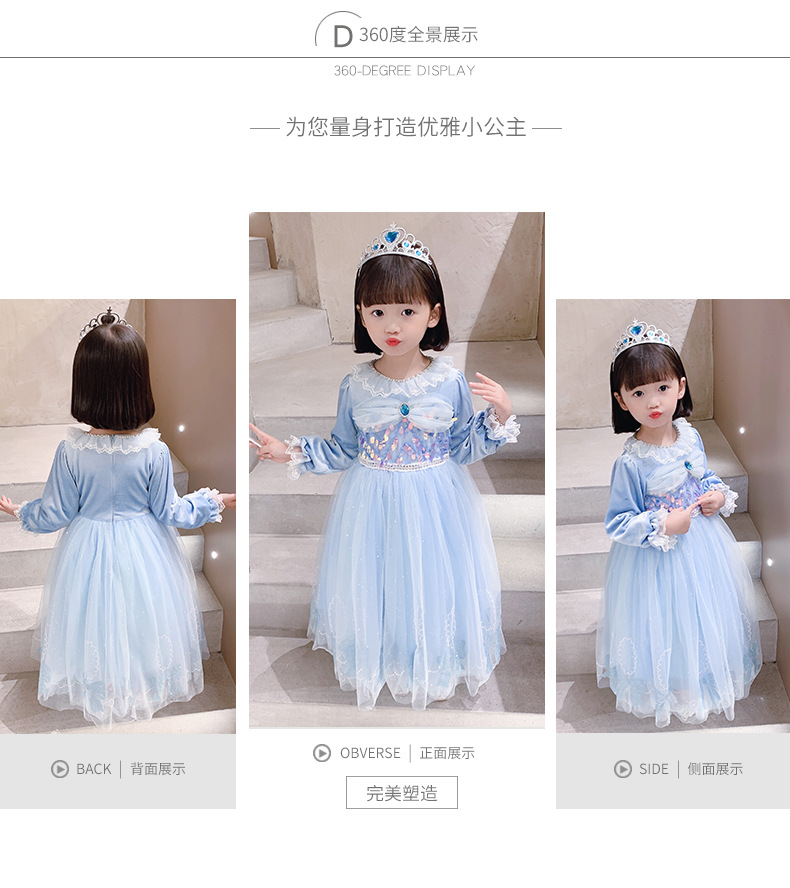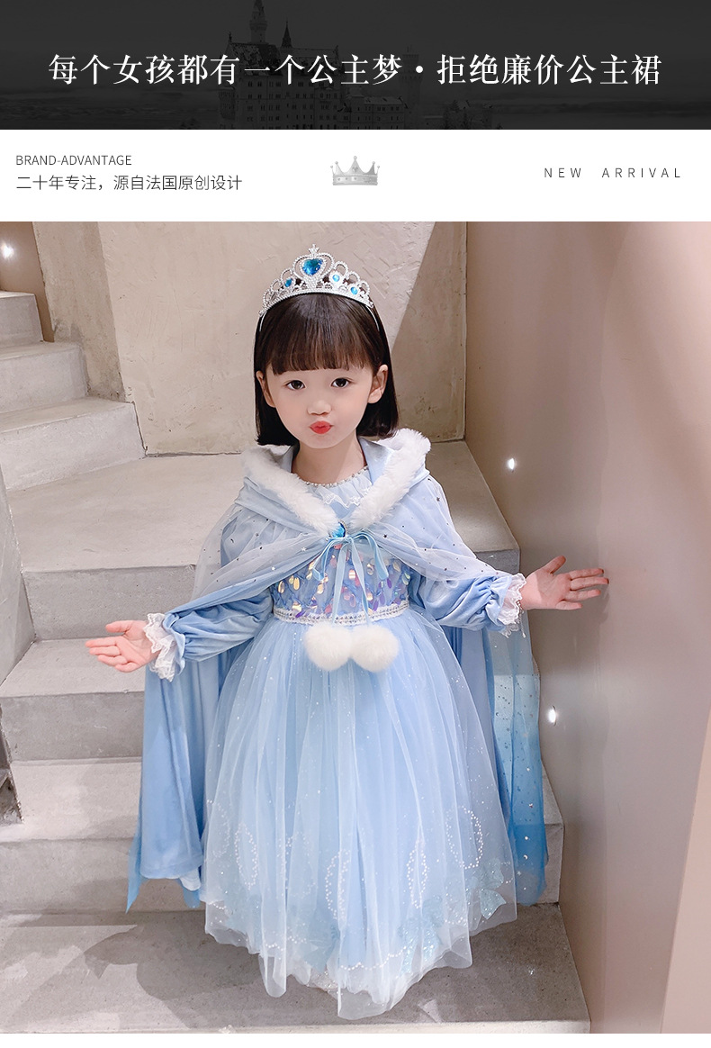 냉동 공주 엘사 원피스 소녀 가을과 겨울 기모 원피스 어린이 엘사 활 두꺼운 원사 스커트