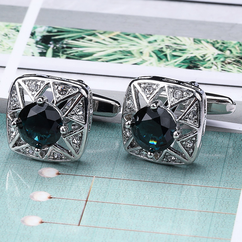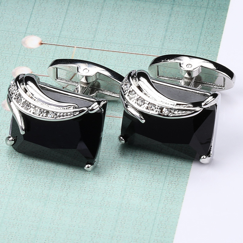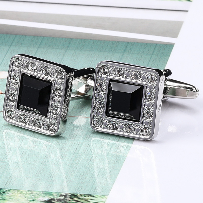 • 스퀘어 블랙 크리스탈 커프스 단추