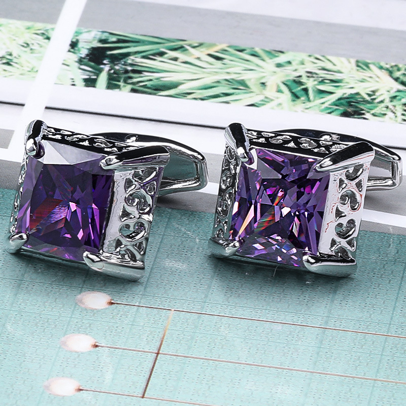 • 퍼플 스퀘어 크리스탈 커프스 단추