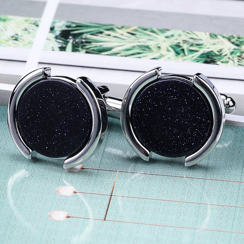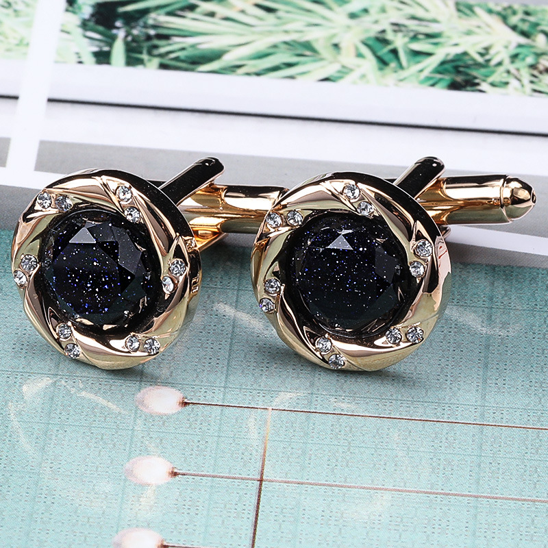 • 다크 블루 라운드 다이아몬드 커프스 단추