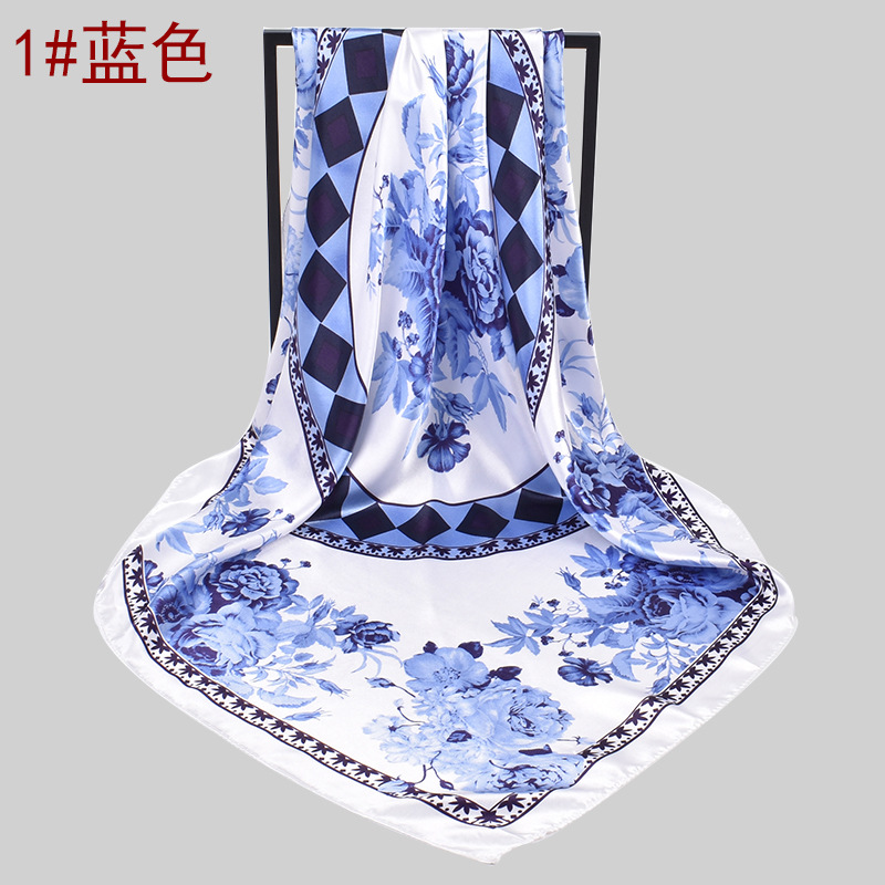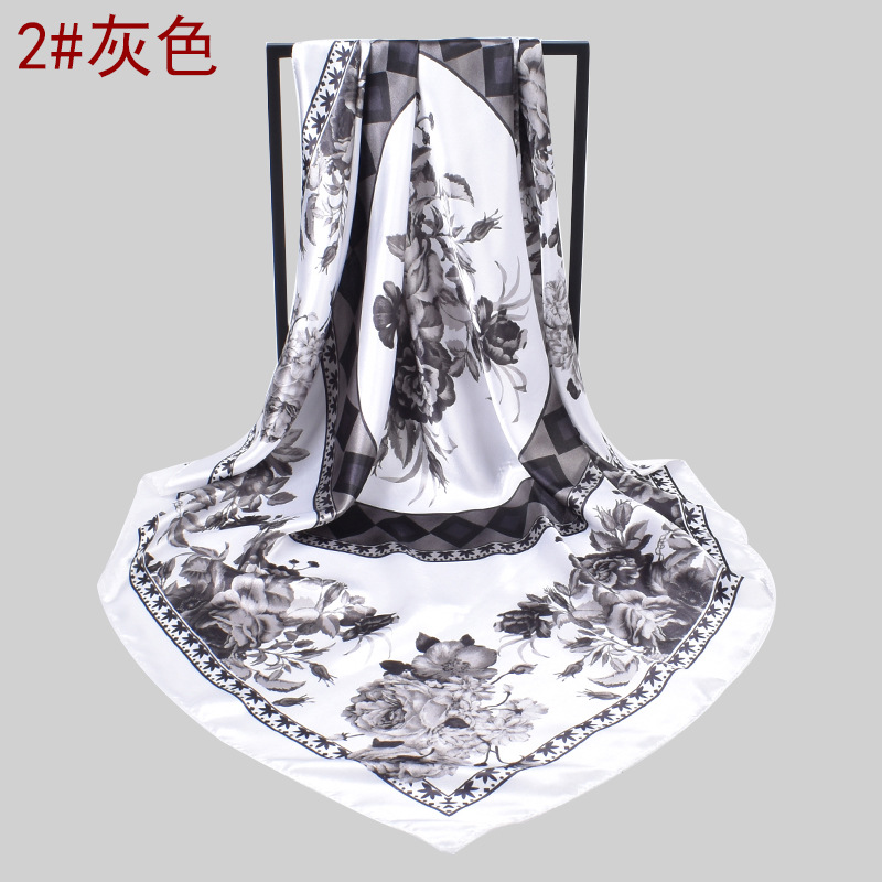 2023 가을 새로운 패션 꽃 일반 패턴 90 새틴 스퀘어 스카프 스카프 재고 크로스 보더 도매