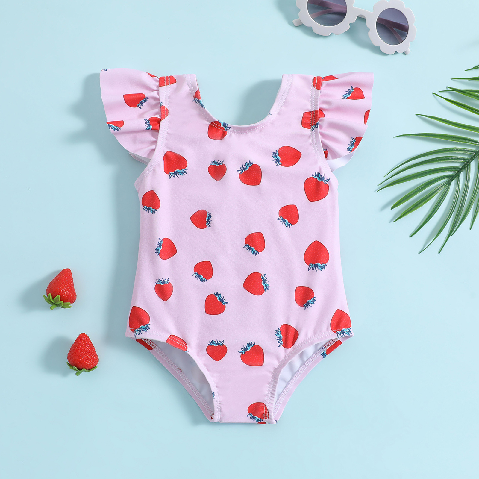 공장 직접 공급 새로운 크로스 보더 소녀 샴 비키니 딸기 인쇄 등이없는 활 소녀 수영복