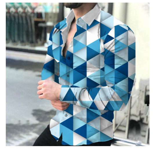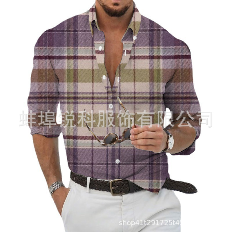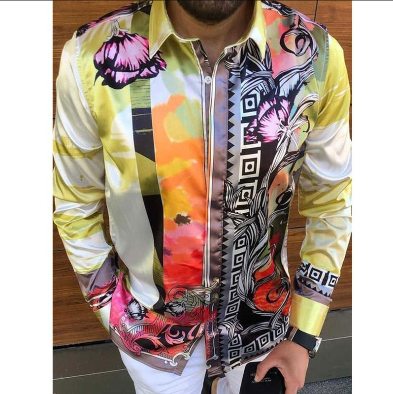 2025년 해외 무역 남성 프린트 긴팔 셔츠 남성 패션 캐주얼 루즈핏 유럽 및 미국 대형 남성 셔츠스토어 가기