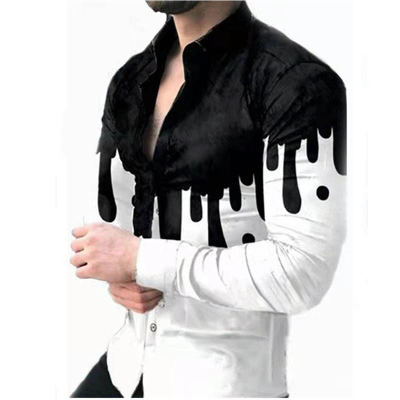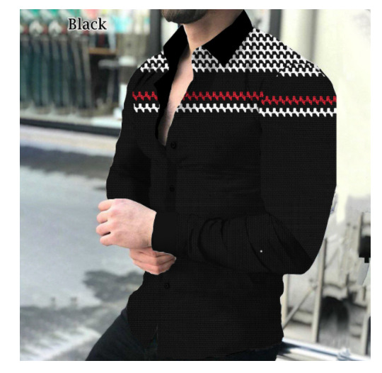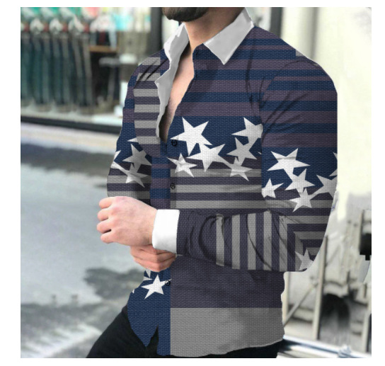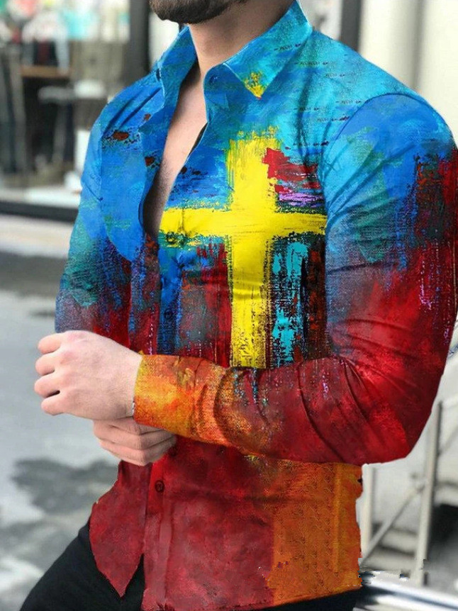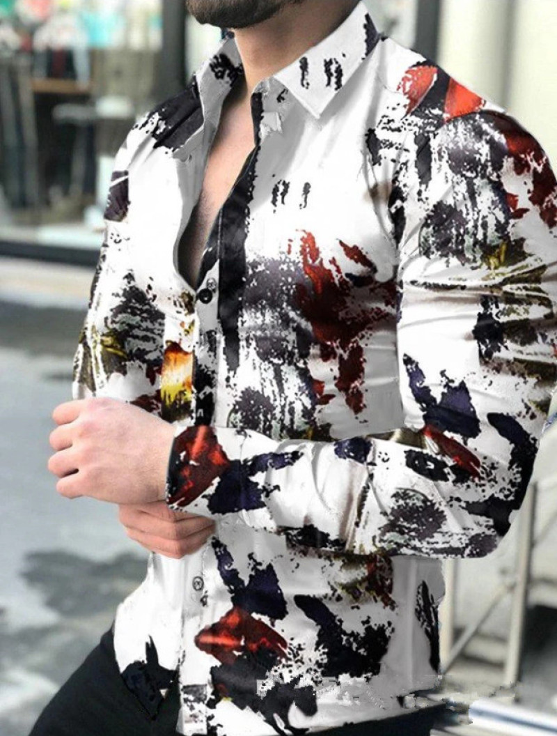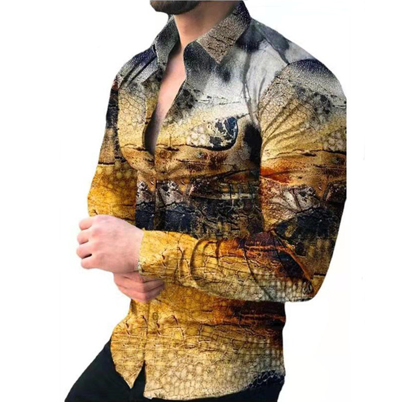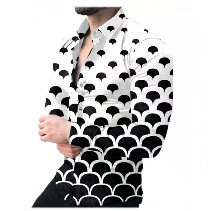 2025년 해외 무역 남성 프린트 긴팔 셔츠 남성 패션 캐주얼 루즈핏 유럽 및 미국 대형 남성 셔츠