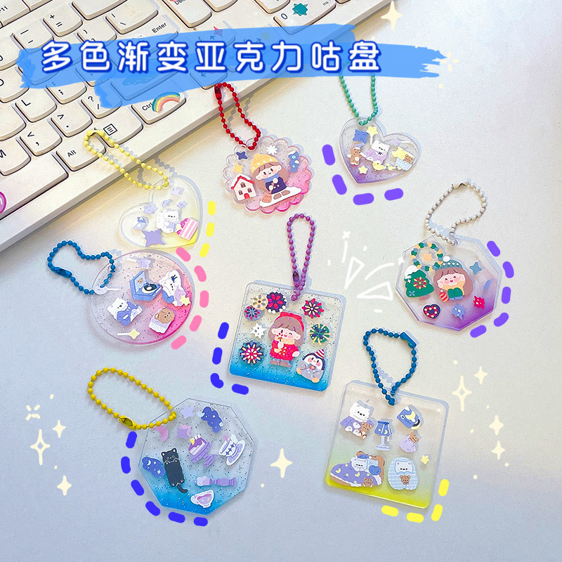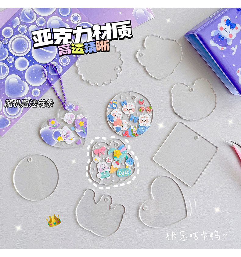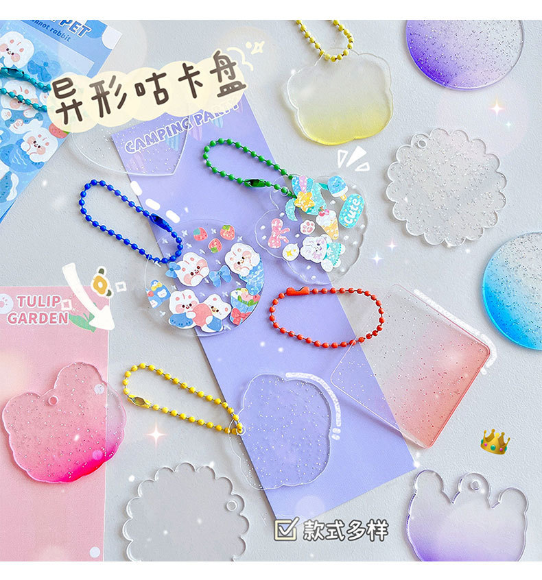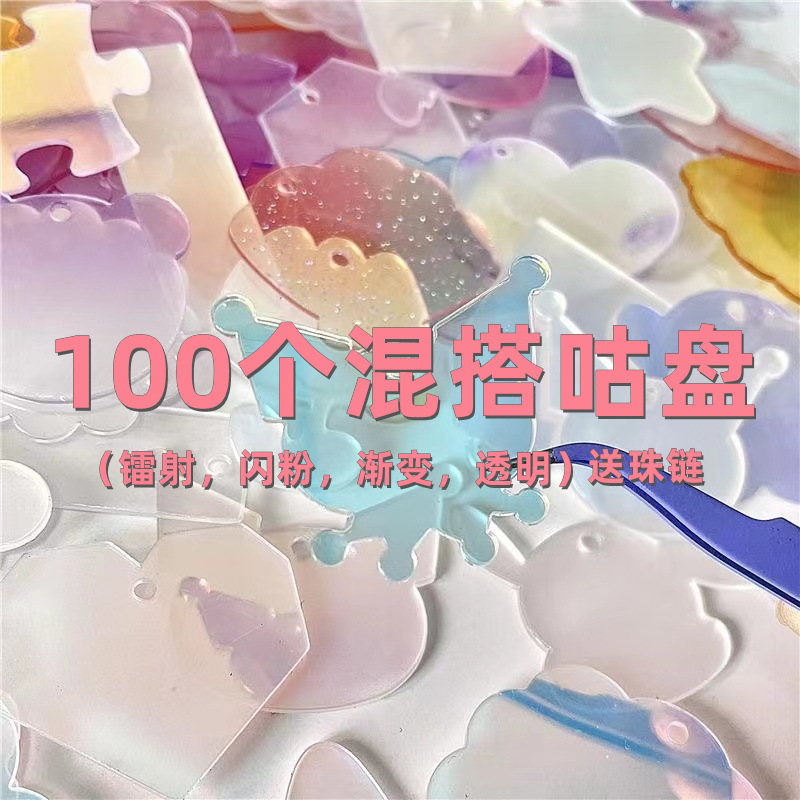 DIY 그라디언트 구이 접시 구이 카드 세트 100 아크릴 레이저 투명 모양의 구이 척 수제 사랑 콩 펜던트