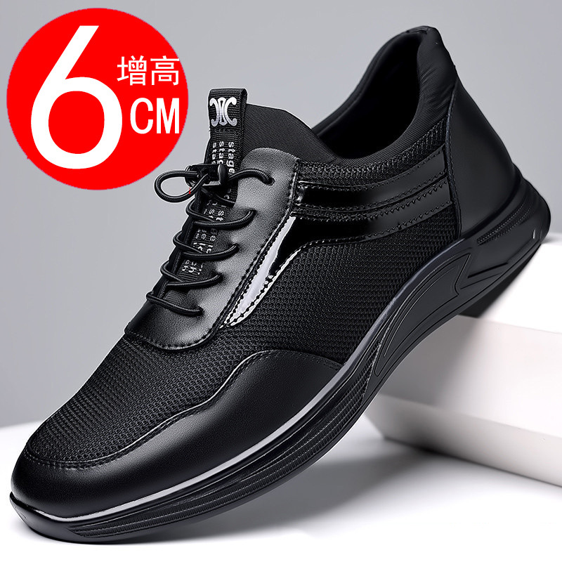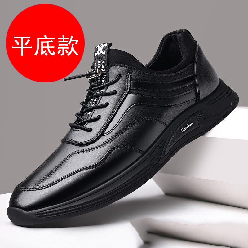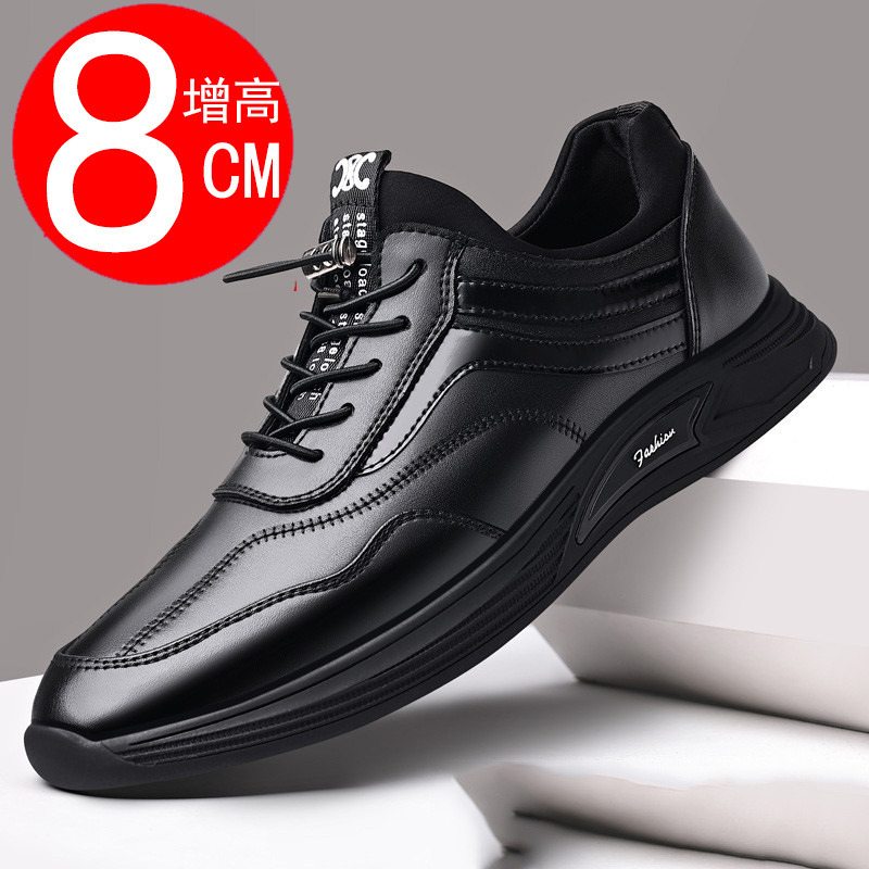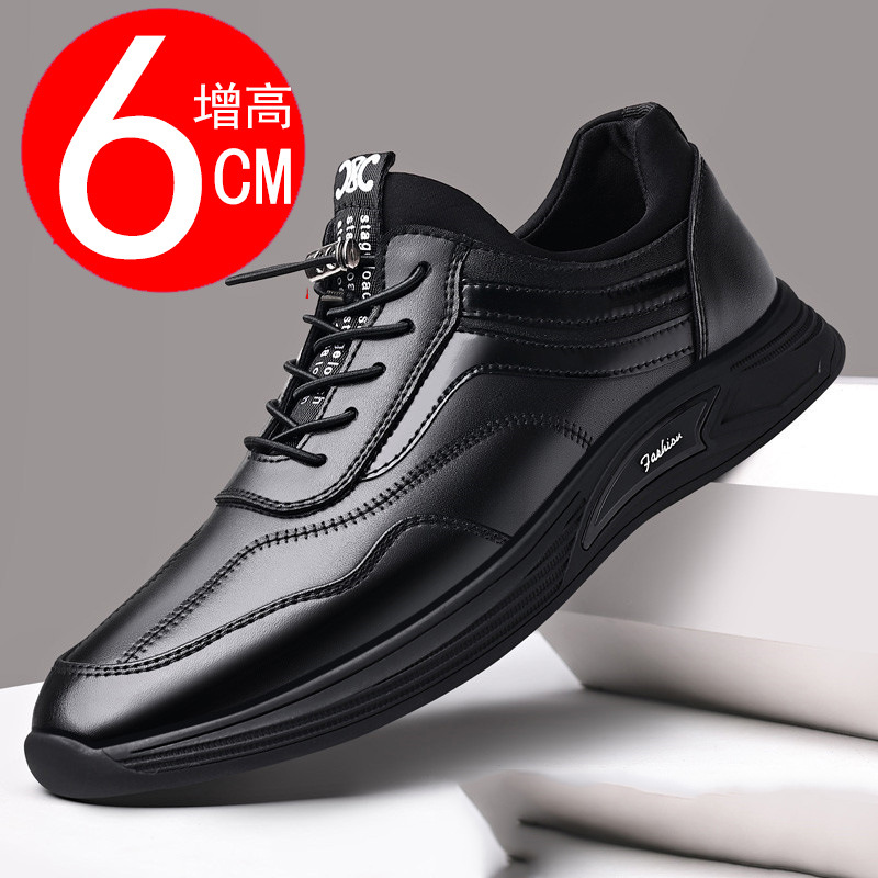 2025 신상 천연가죽 남성화, 한국 스타일 캐주얼 부드러운 밑창 청년 가죽신, 키높이 신발, 슬립온, 크로스보더스토어 가기