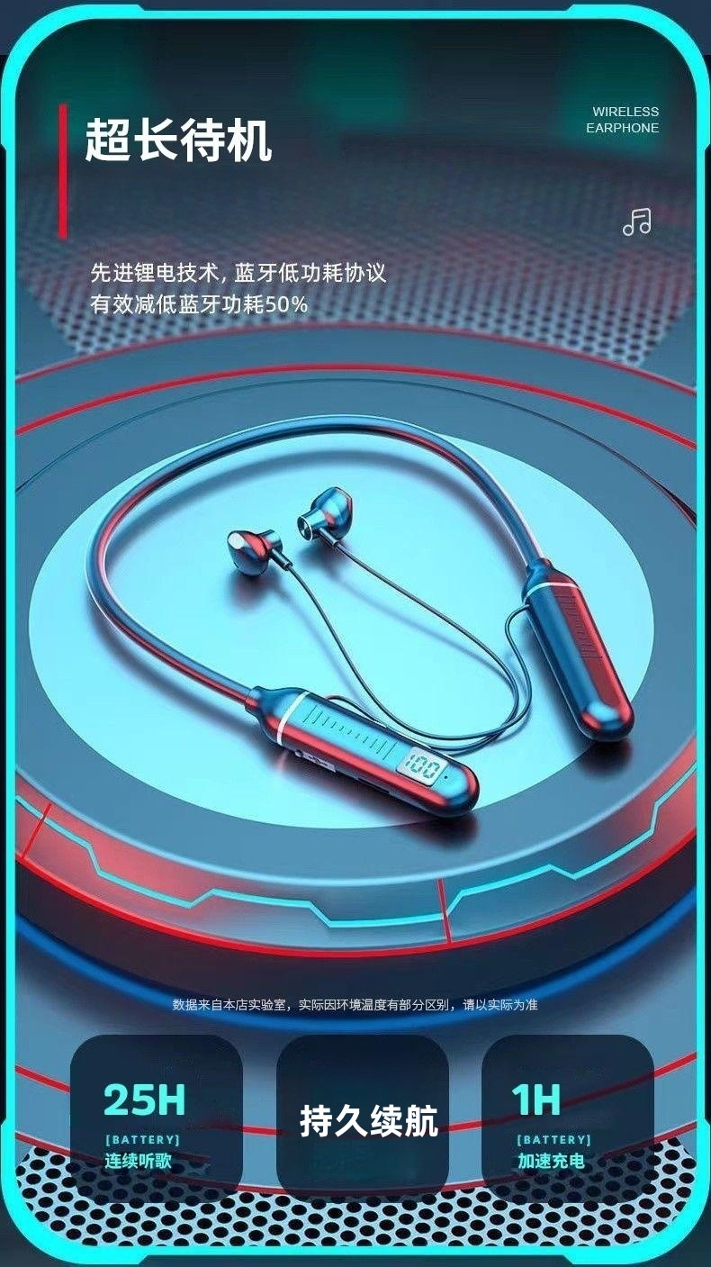 블루투스 이어폰 고음질 신형 넥밴드 스포츠 게임 노이즈 캔슬링 자체 디자인 초장시간 대기시간 해외 판매