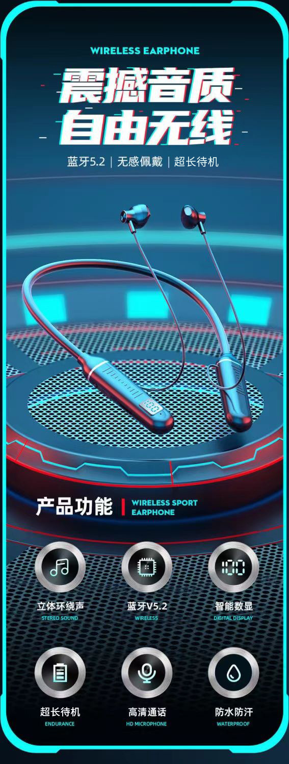 블루투스 이어폰 고음질 신형 넥밴드 스포츠 게임 노이즈 캔슬링 자체 디자인 초장시간 대기시간 해외 판매스토어 가기