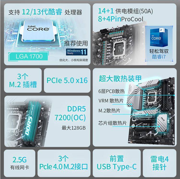 Asus PRIME Z790-P D5 데스크탑 컴퓨터 마더 보드 13 세대 코어 cpu 13600kf