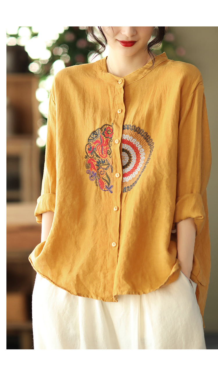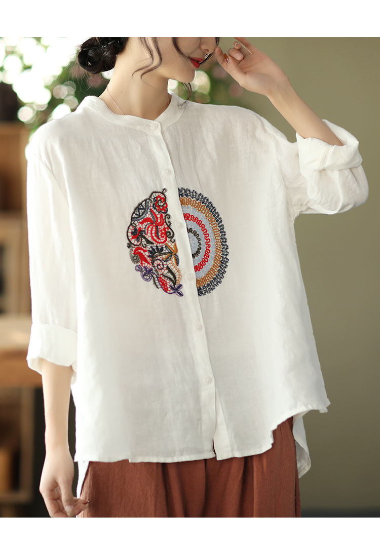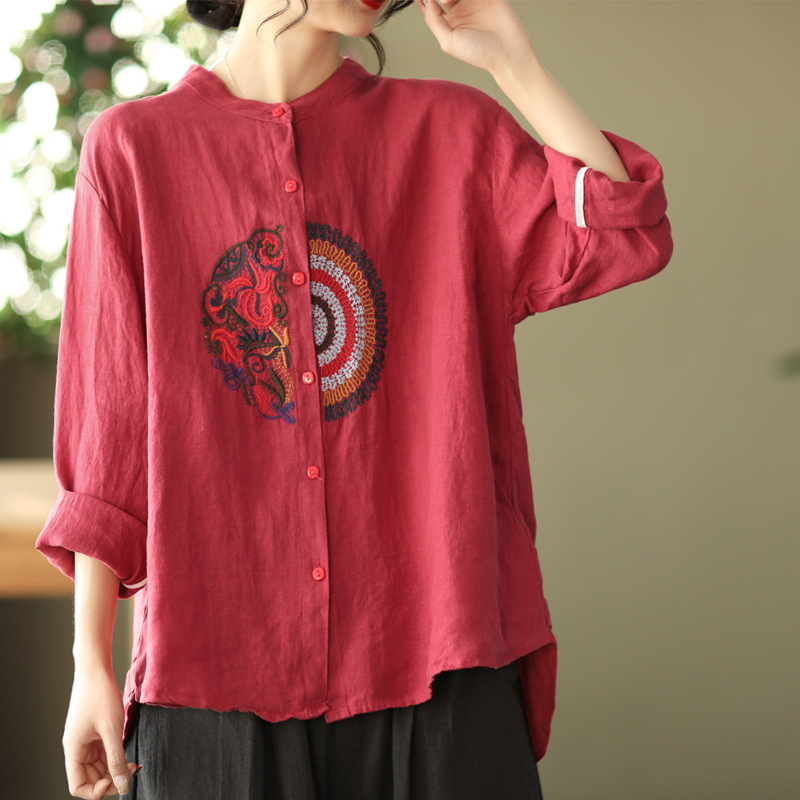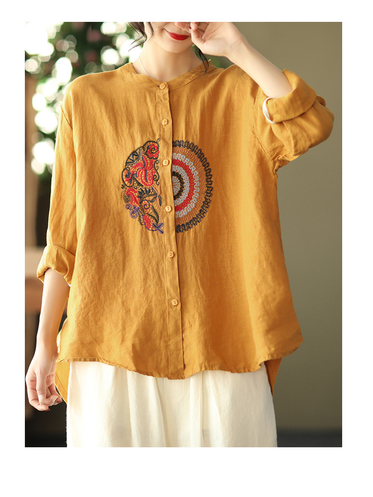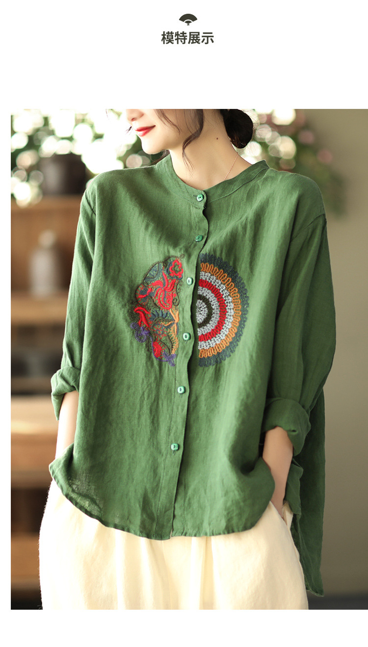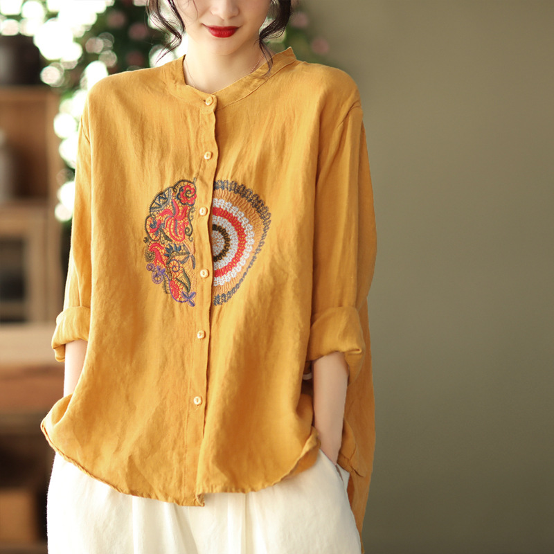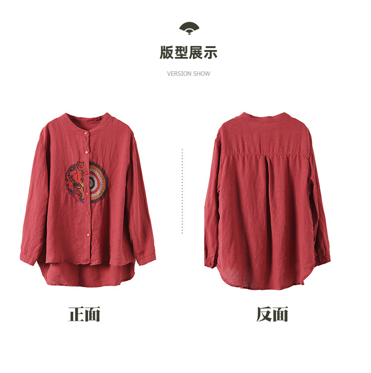 캐주얼 플러스 사이즈 예술적인 면과 린넨 긴팔 셔츠 여성의 2023 봄과 가을 새로운 느슨한 슬림 자수 탑 베이스스토어 가기