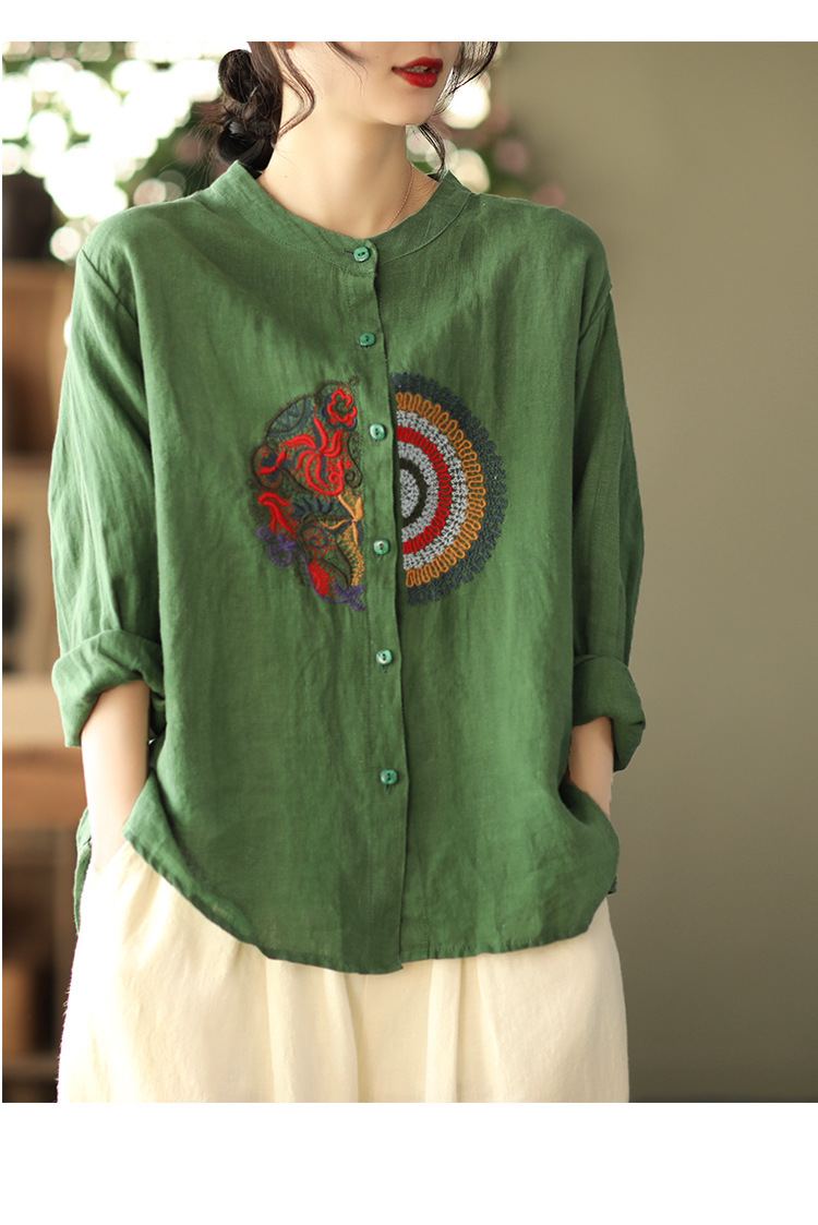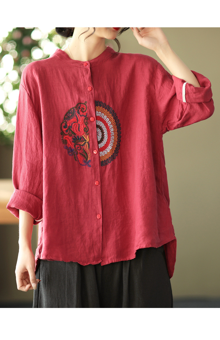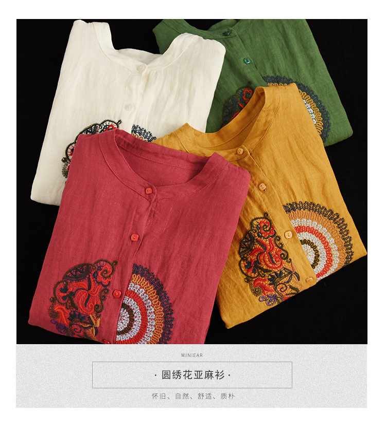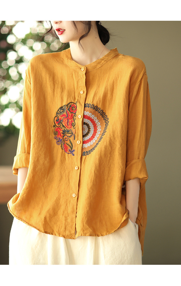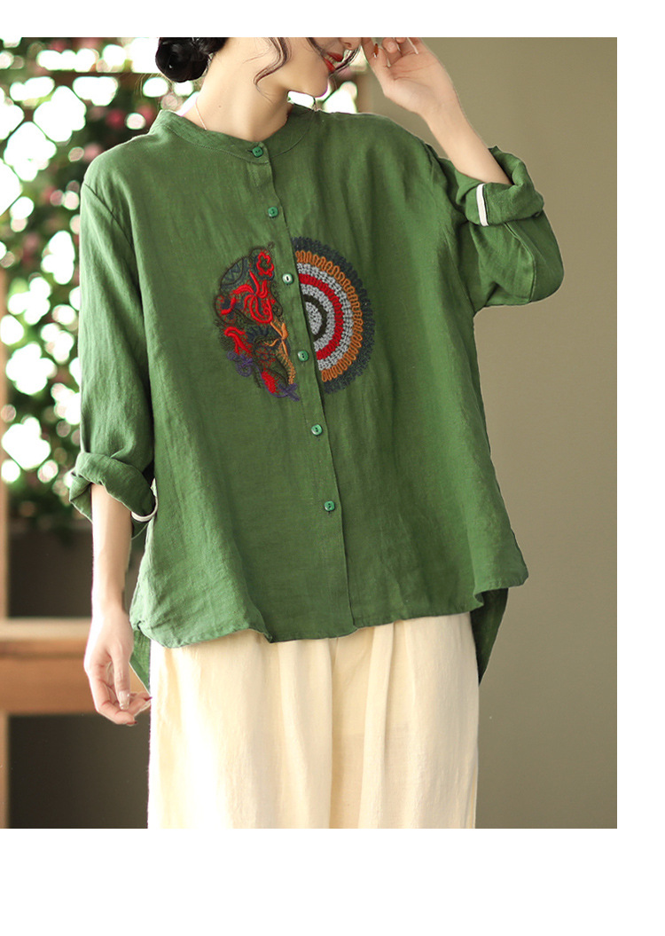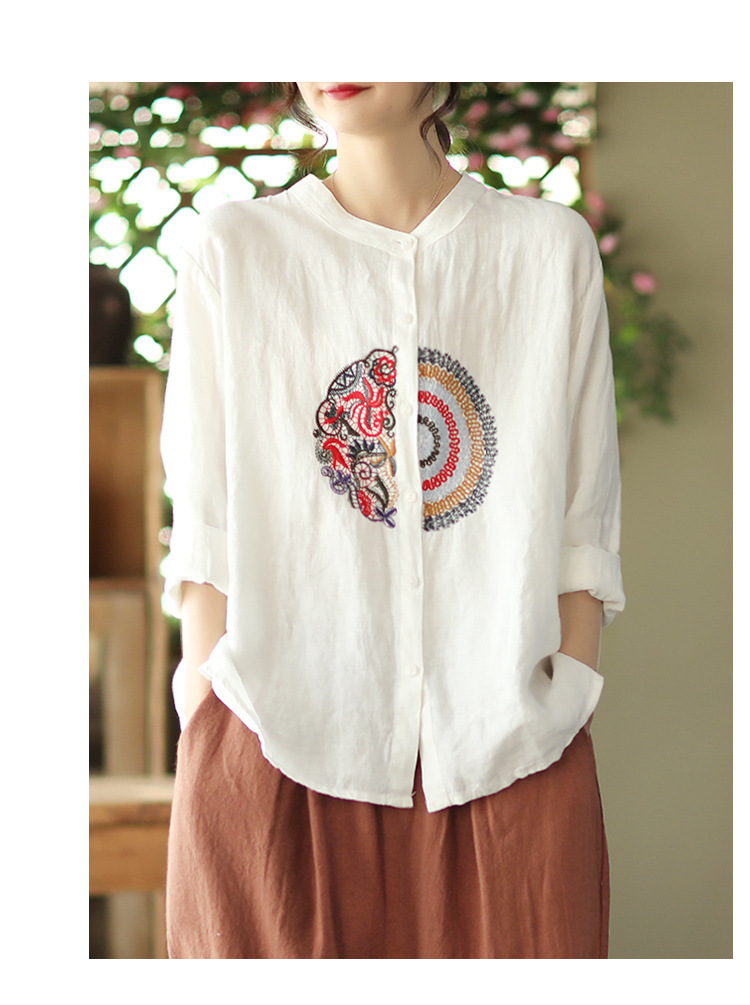 캐주얼 플러스 사이즈 예술적인 면과 린넨 긴팔 셔츠 여성의 2023 봄과 가을 새로운 느슨한 슬림 자수 탑 베이스스토어 가기