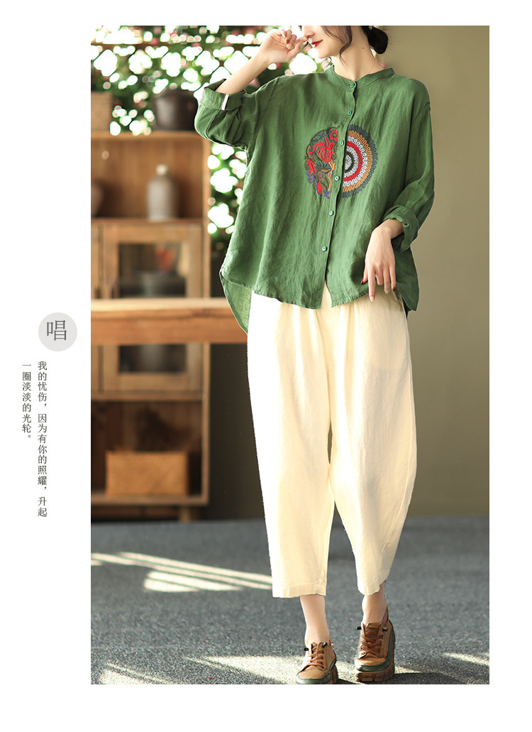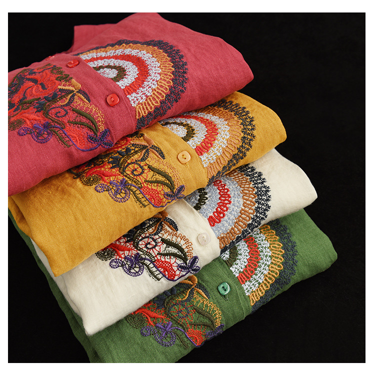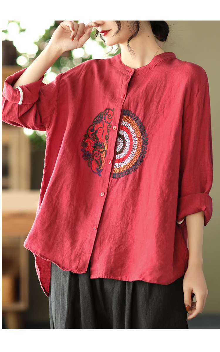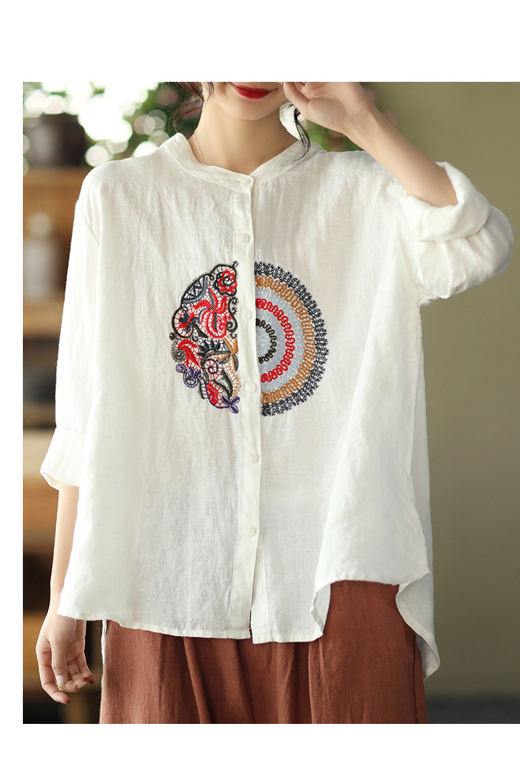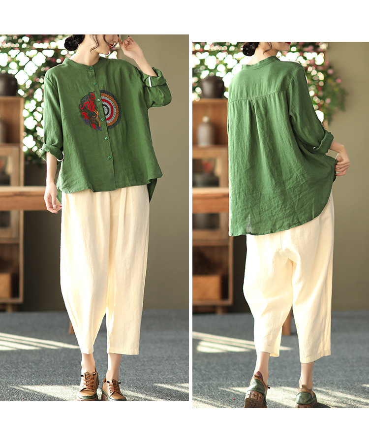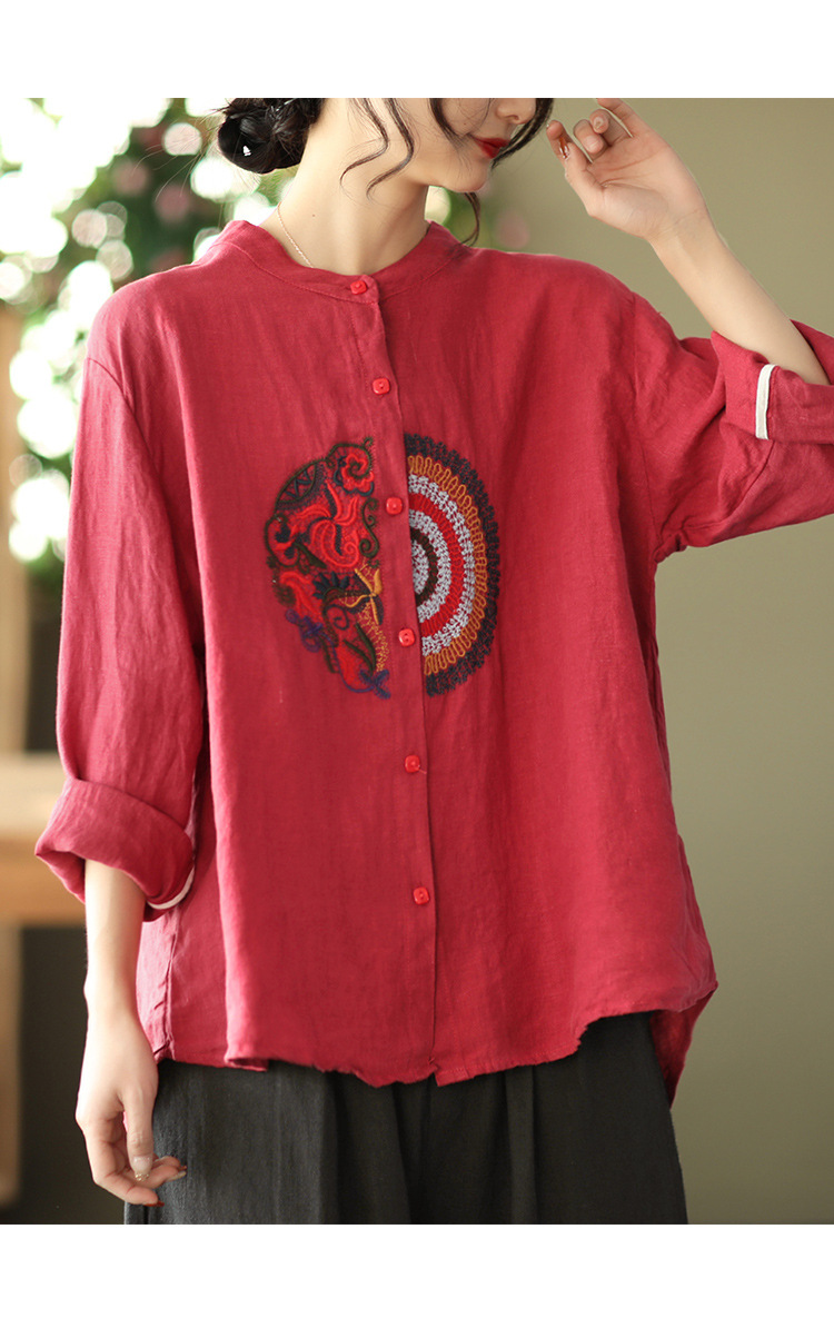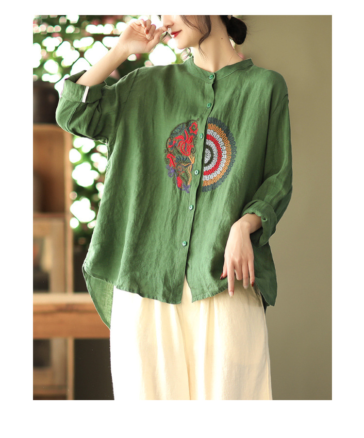 캐주얼 플러스 사이즈 예술적인 면과 린넨 긴팔 셔츠 여성의 2023 봄과 가을 새로운 느슨한 슬림 자수 탑 베이스스토어 가기