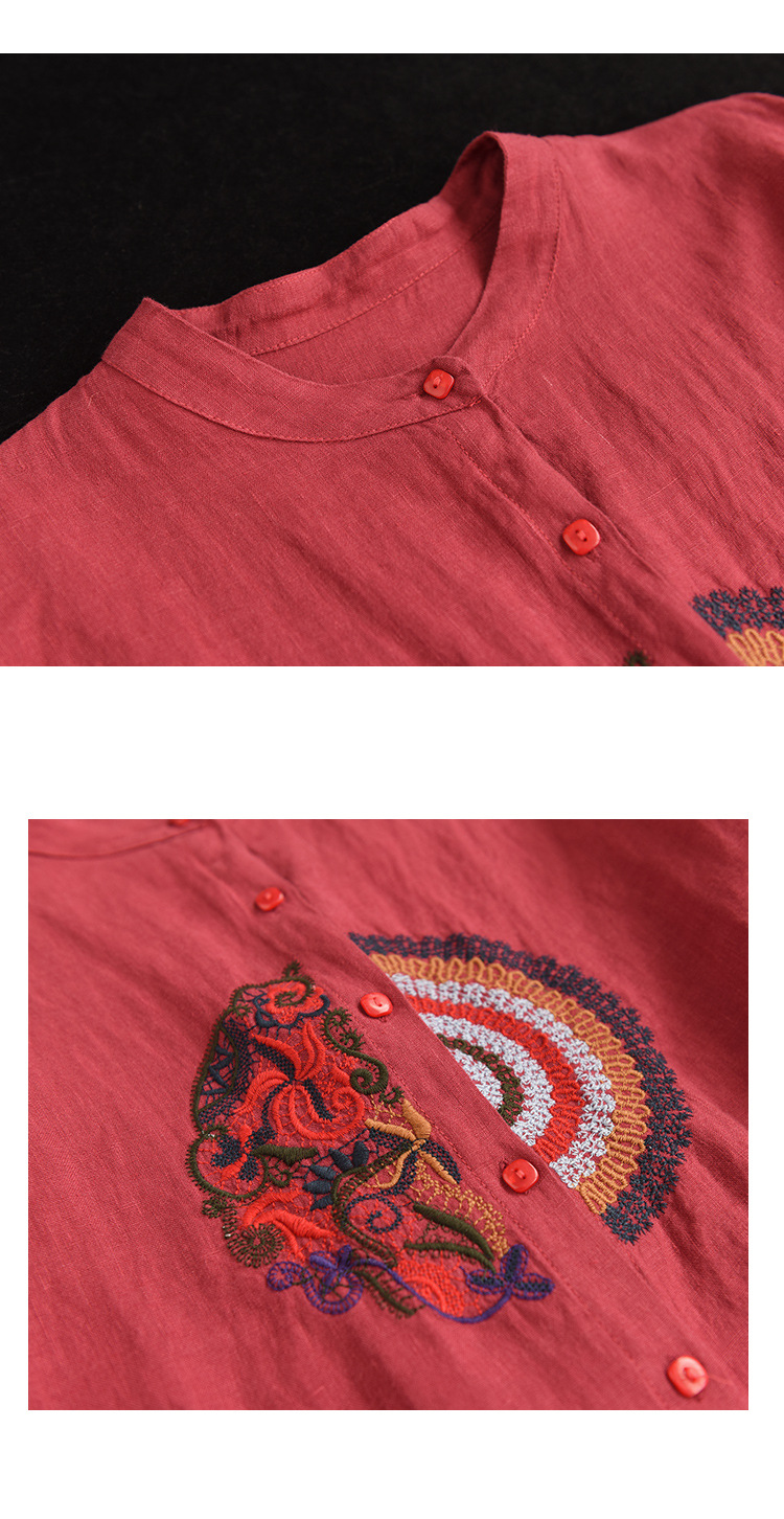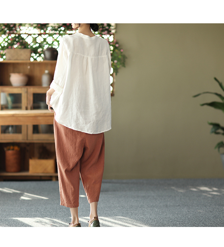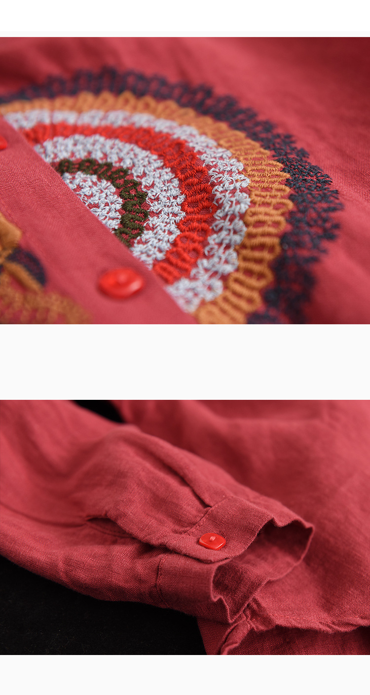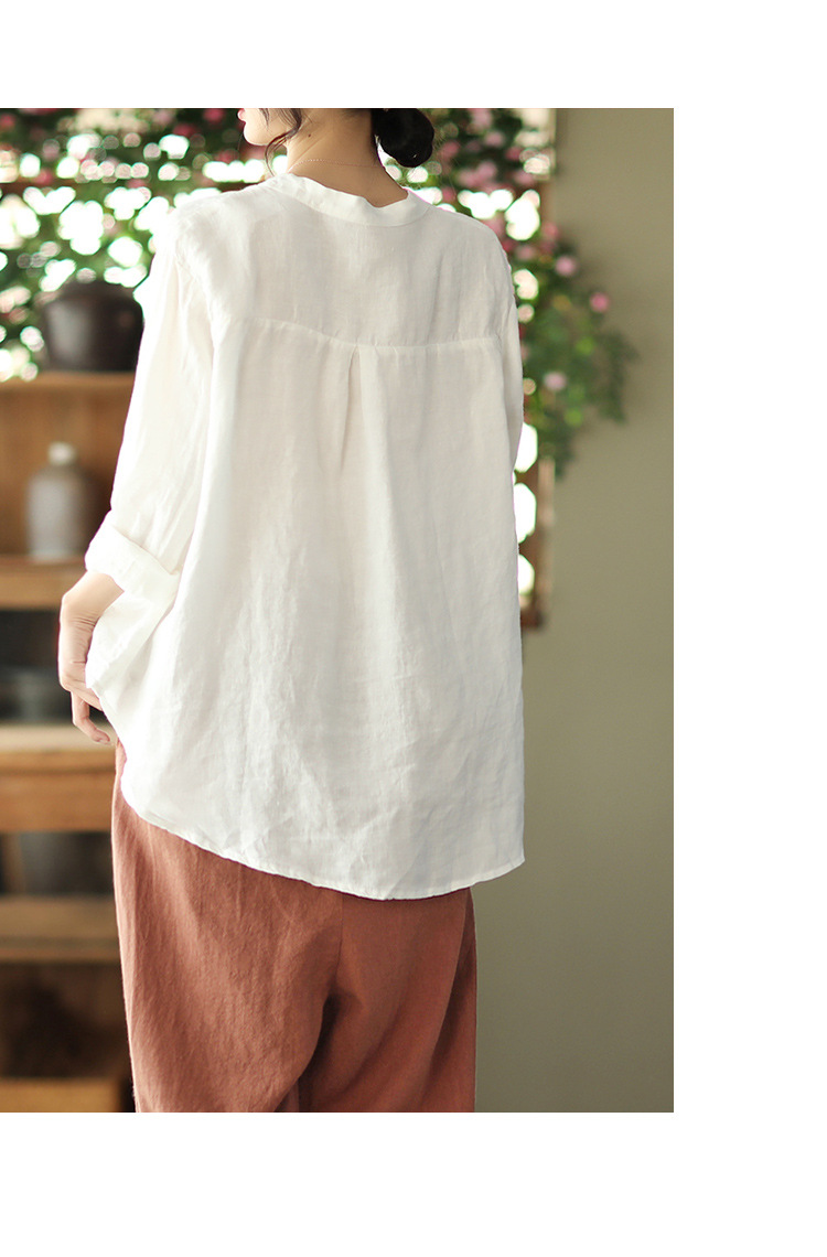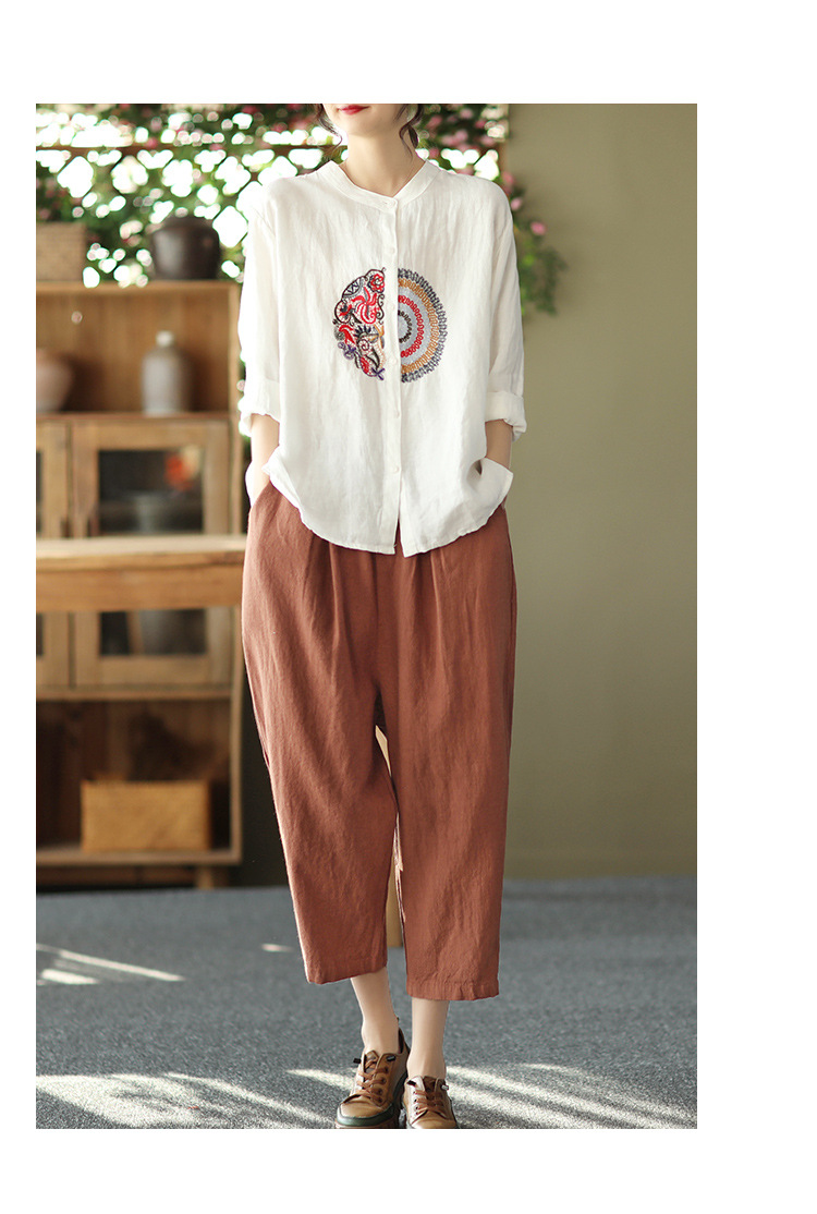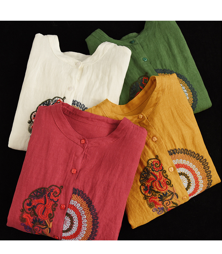 캐주얼 플러스 사이즈 예술적인 면과 린넨 긴팔 셔츠 여성의 2023 봄과 가을 새로운 느슨한 슬림 자수 탑 베이스스토어 가기