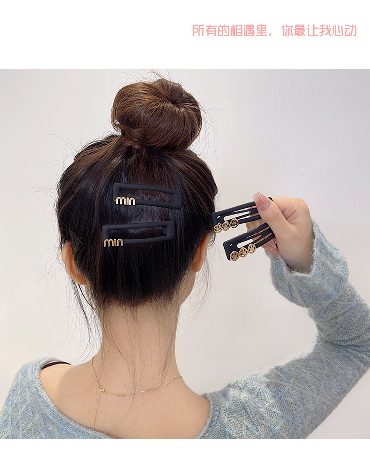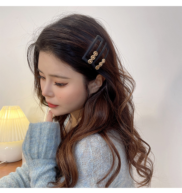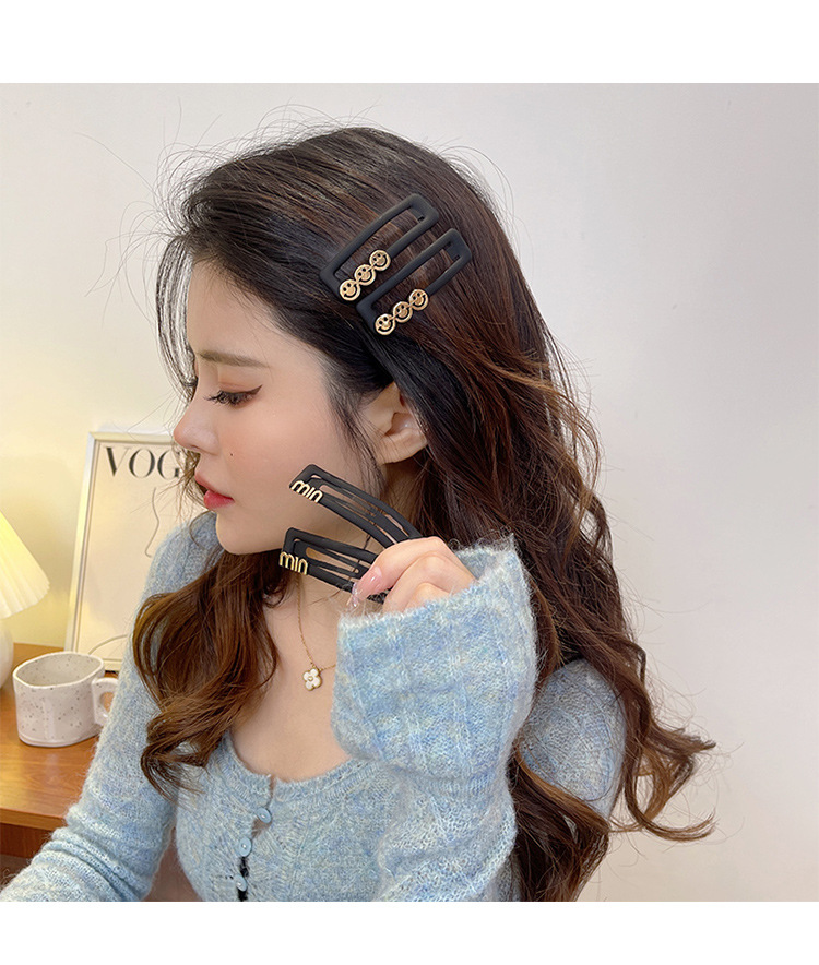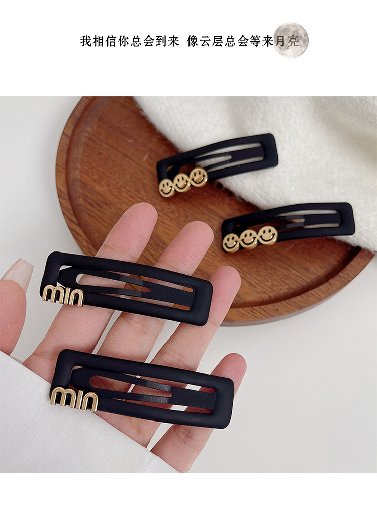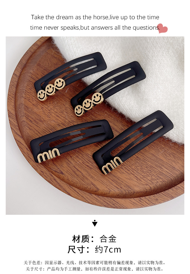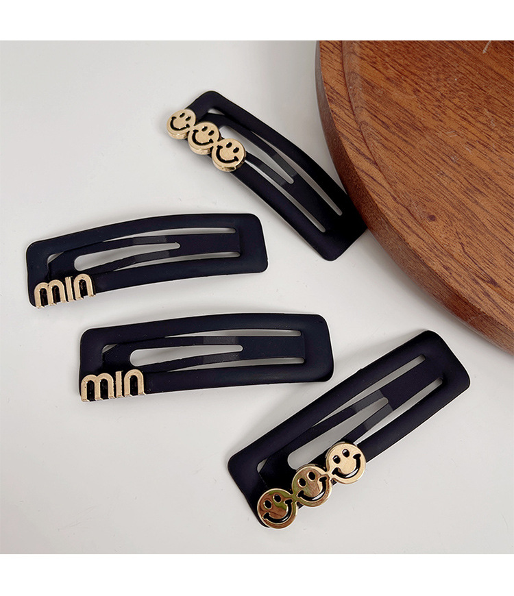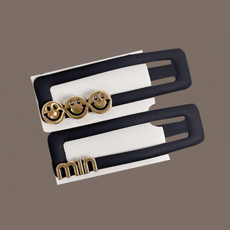 [한 쌍] 뉴 인 골든 스마일리 블랙 헤어 클립 최소 귀여운 사이드 클립 깨진 머리 앞머리 BB 클립 머리 장식스토어 가기