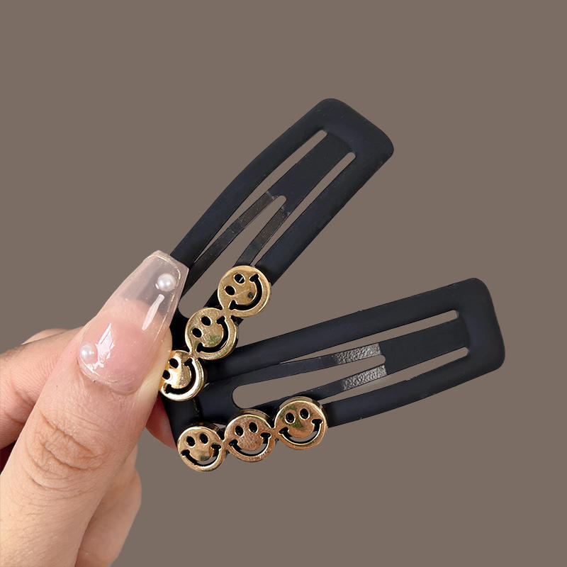 [한 쌍] 뉴 인 골든 스마일리 블랙 헤어 클립 최소 귀여운 사이드 클립 깨진 머리 앞머리 BB 클립 머리 장식