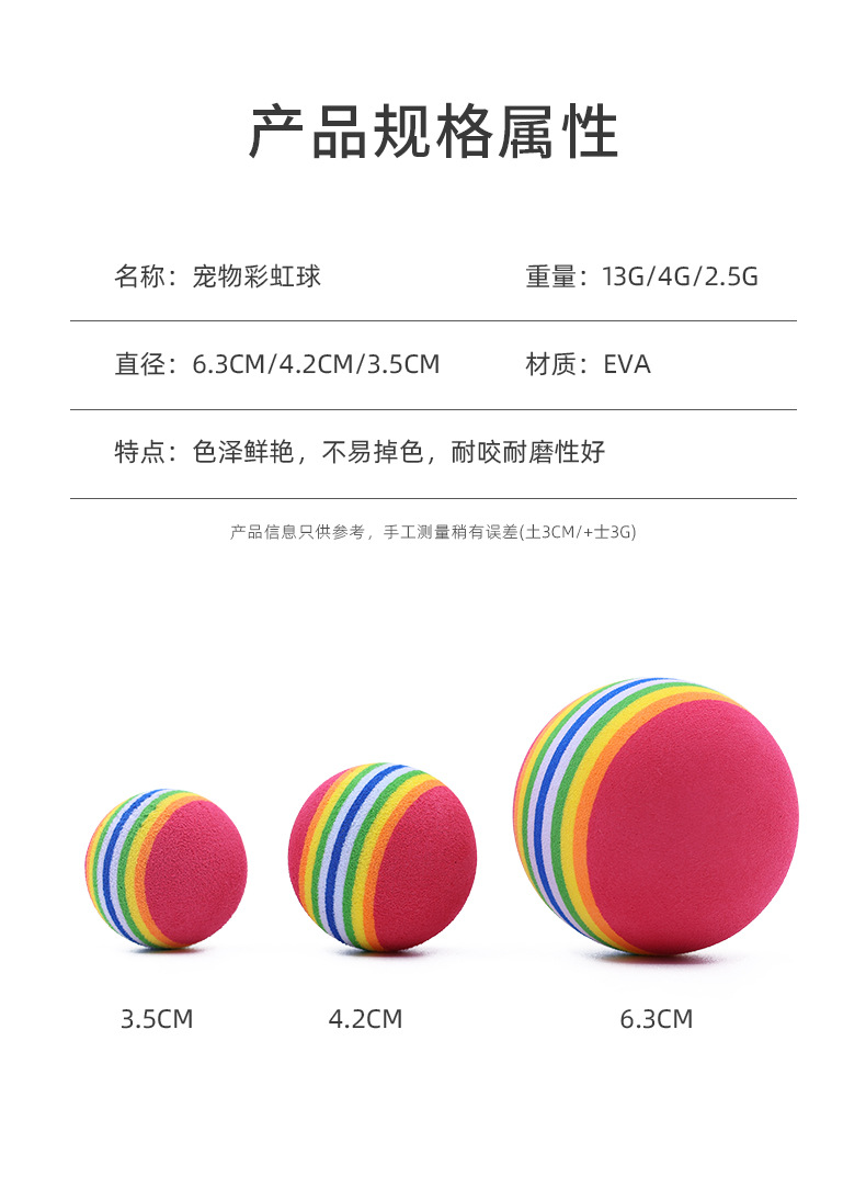EVA 소재 폼 코튼 볼 레인보우 볼 다채로운 공 고양이 장난감 공 애완 동물 장난감 공 작은 개 용품스토어 가기