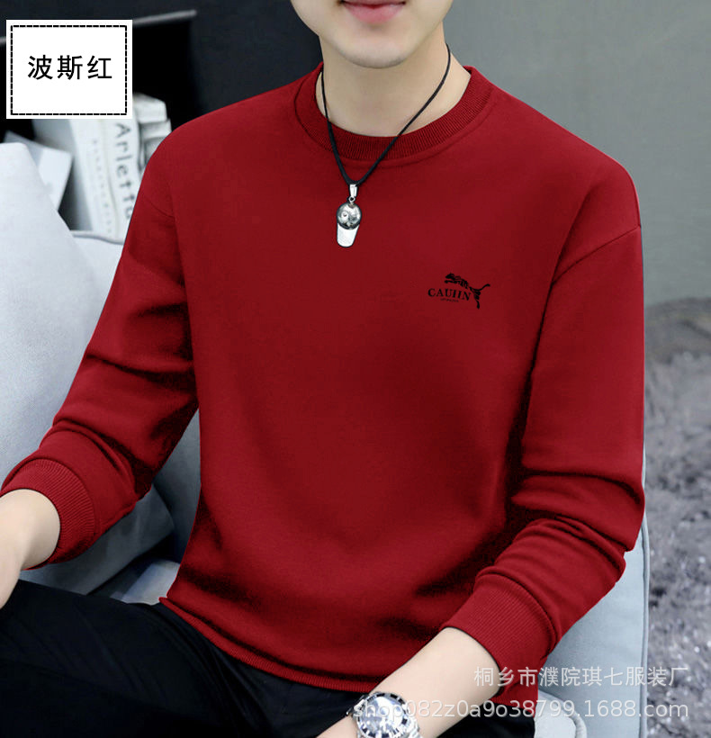 2023 남성용 겨울 긴팔 기모 두꺼운 남성용 스웨터 6 색 옵션 패션 청소년 라운드 넥 긴팔 티셔츠스토어 가기