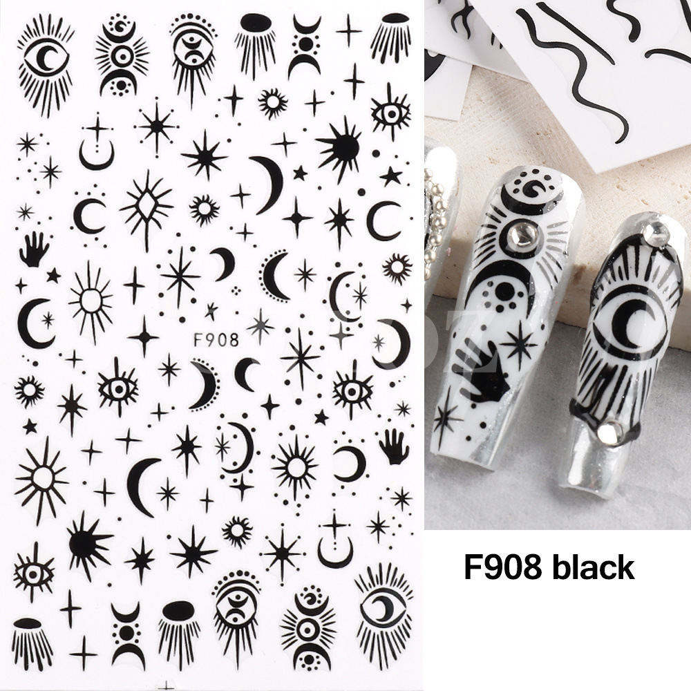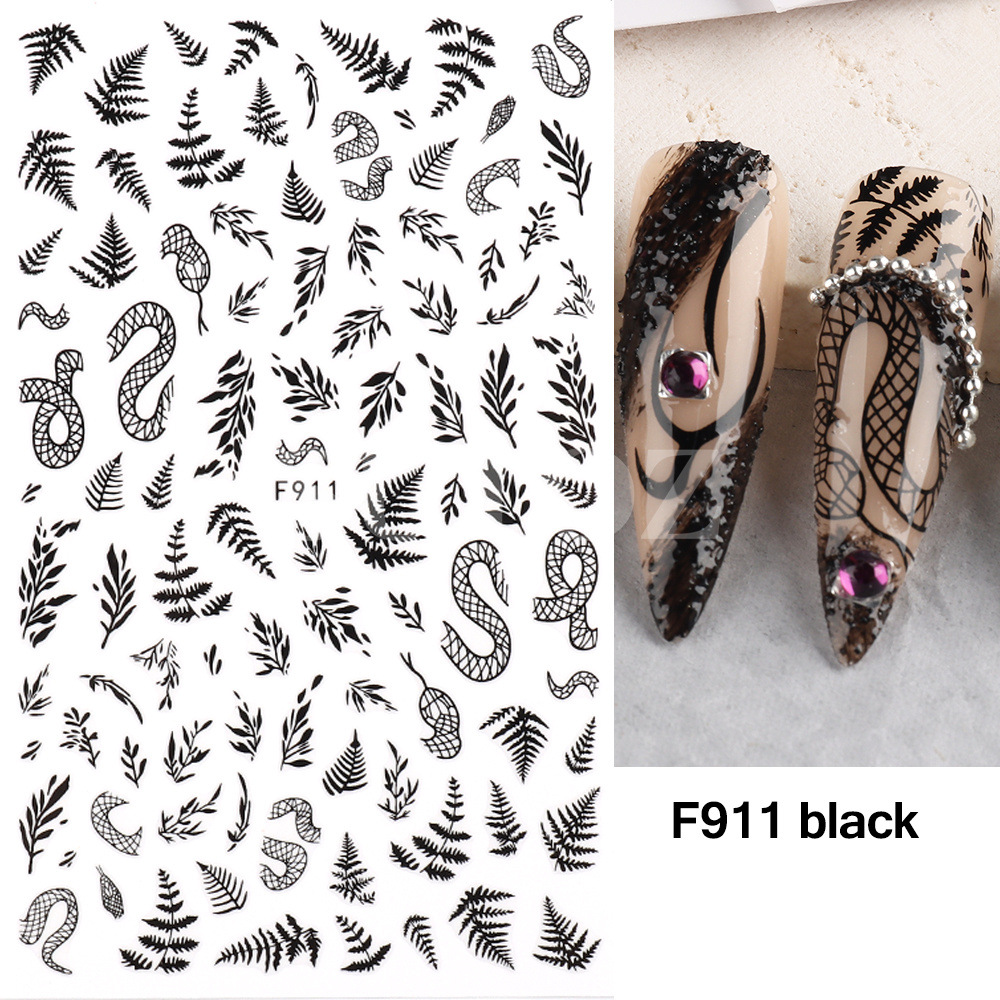 새로운 네일 아트 스티커의 국경 간 공급 유럽 및 미국 스타일 흑백 뱀 장미 기하학적 라인 개인화 된 백 접착제 스티커