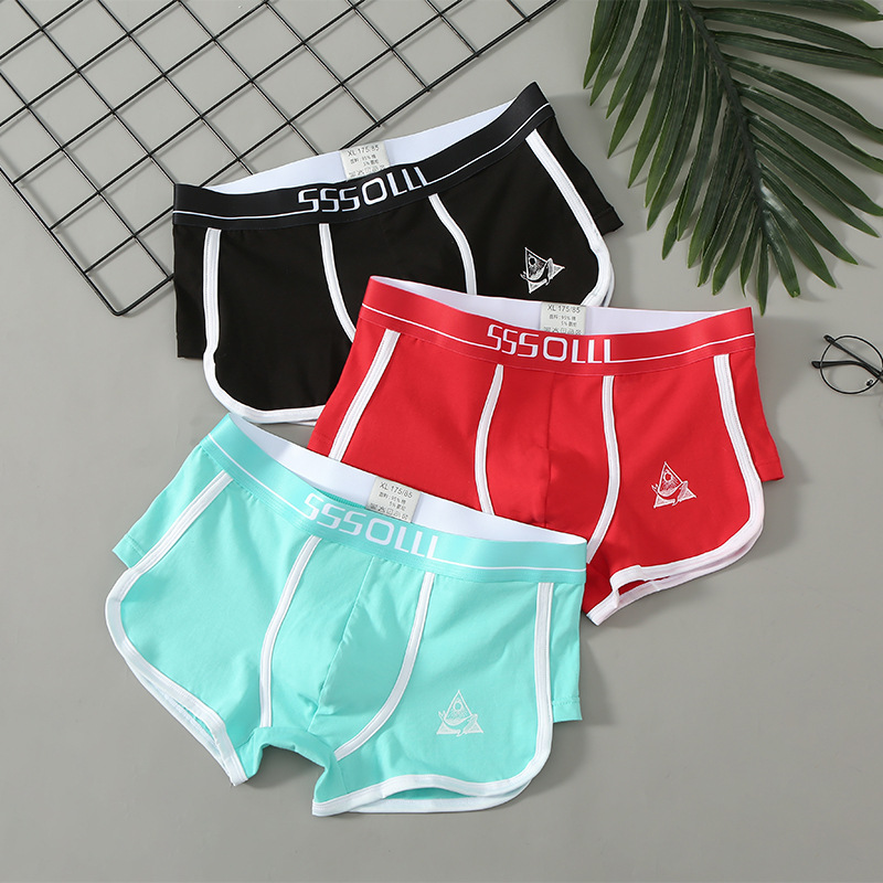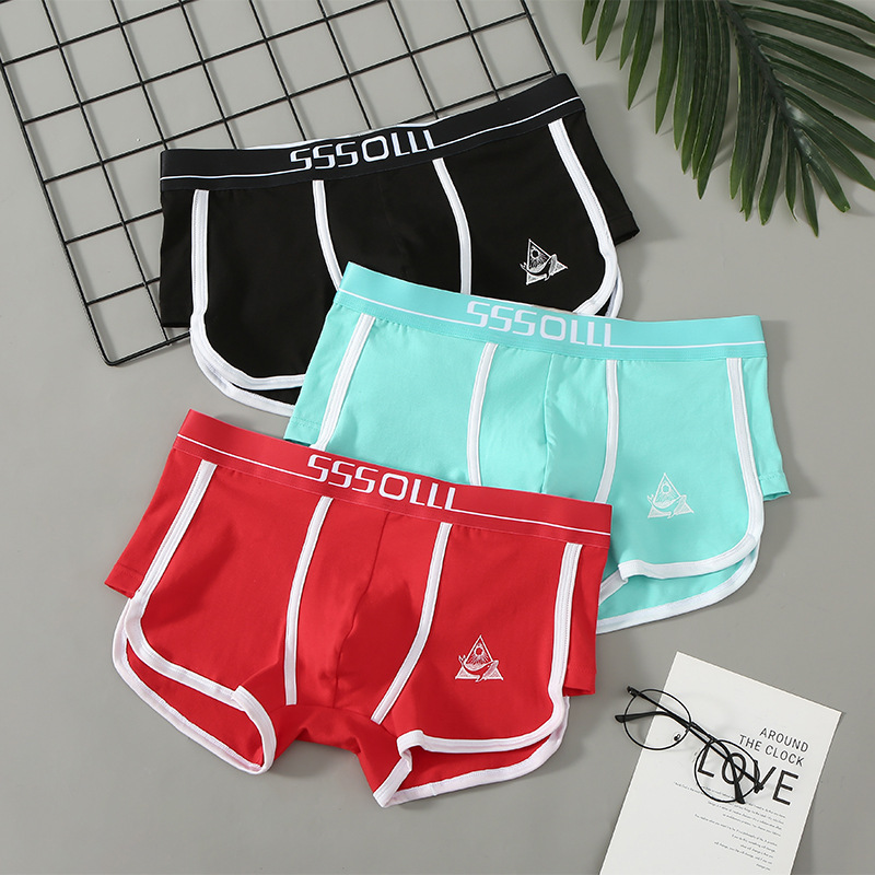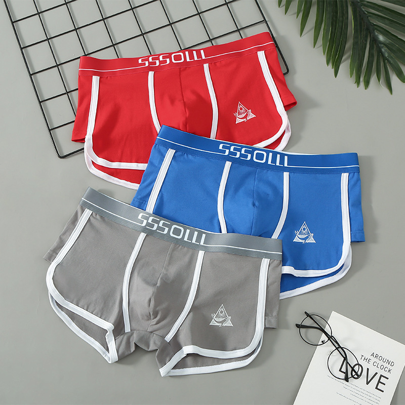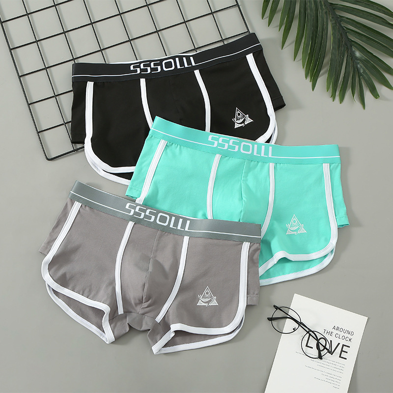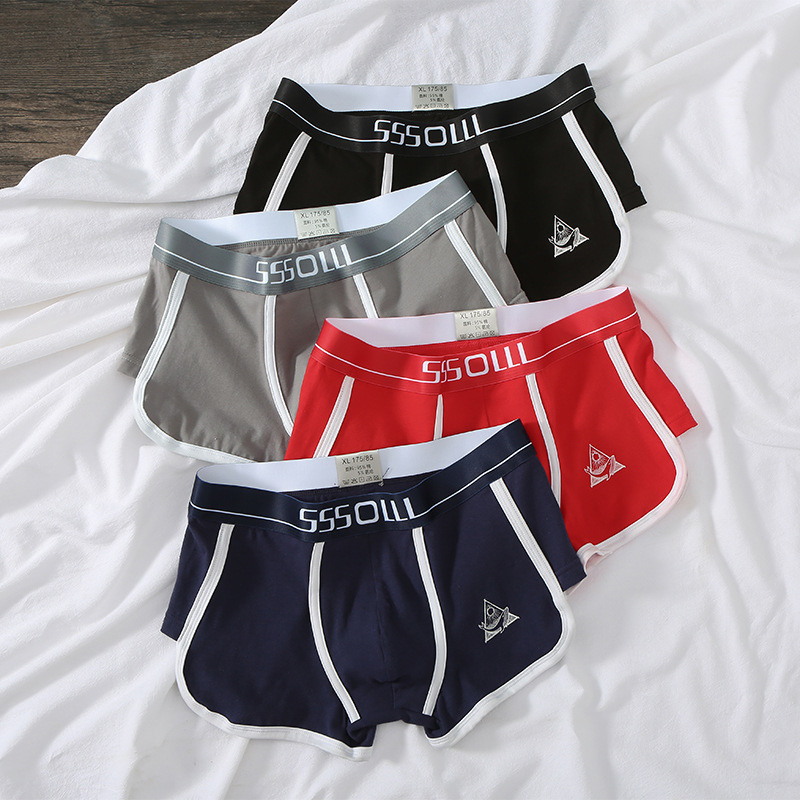 개인화 된 남성 속옷 면 스포츠 통기성 항균 미드 웨이스트 새로운 느슨한 유행 남성 학생 순면 복서 속옷스토어 가기
