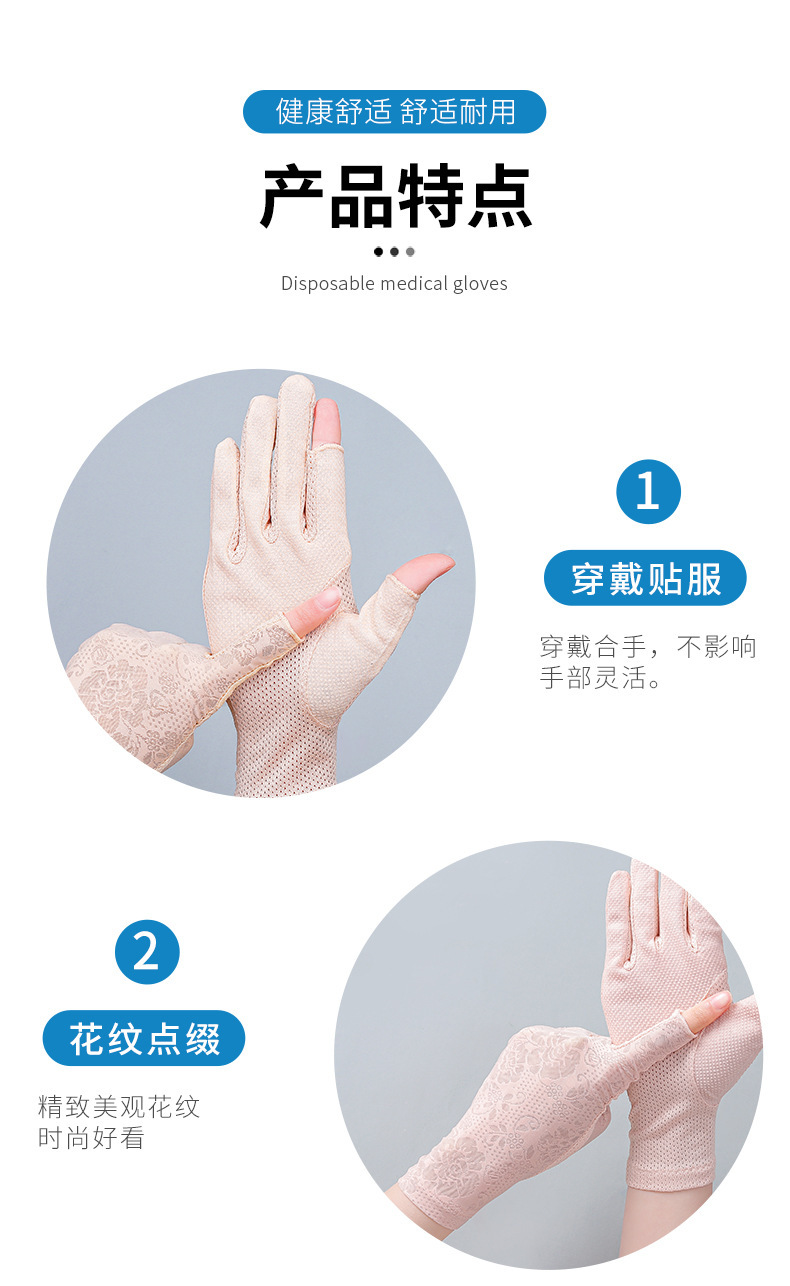노출 손가락 자외선 차단제 장갑 여성용 얇은 얼음 실크 여름 면 자외선 방지 반 손가락 운전 미끄럼 방지 두 손가락 차양 차 따기스토어 가기