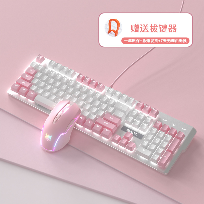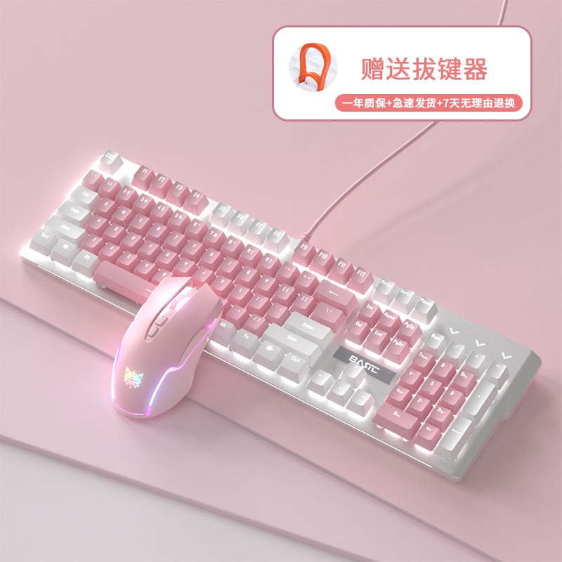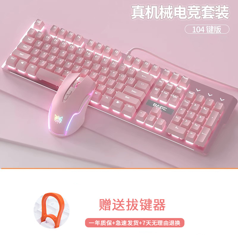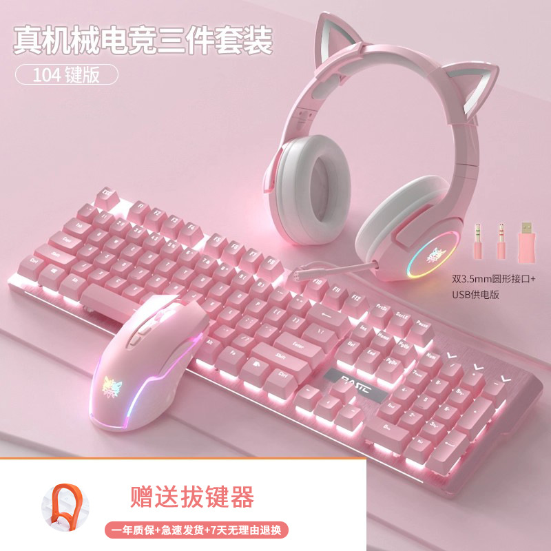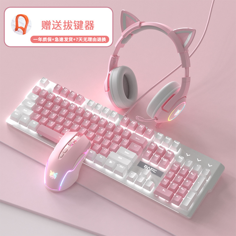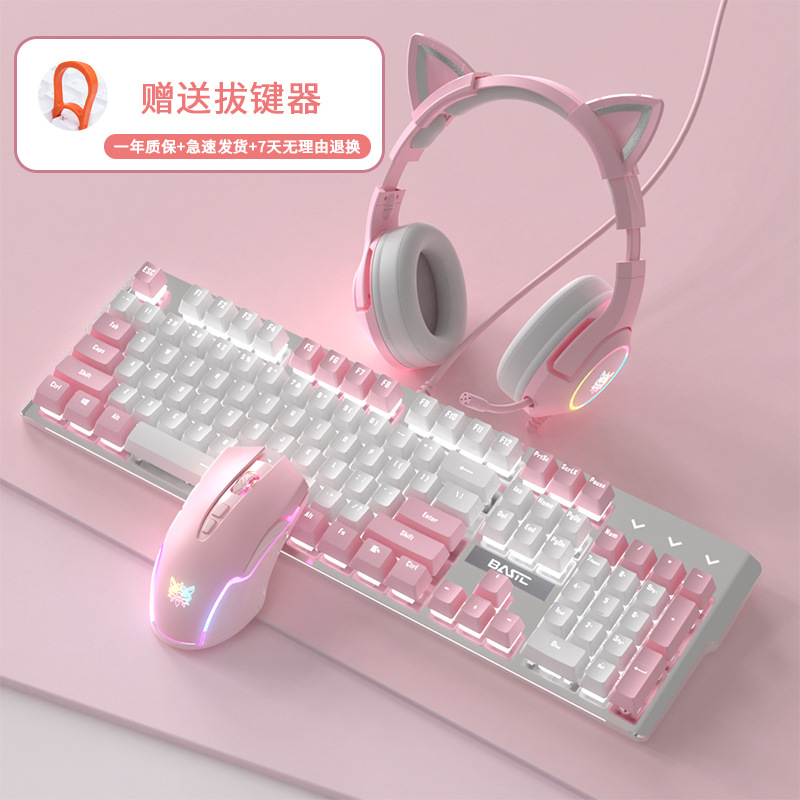 • 화이트 핑크 기계식 키보드(녹색 축) + 핑크 마우스 + 핑크 헤드폰